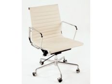 Height-adjustable office chair with wheels, chrome metal structure and off-white leather upholsteryDelivery time10 to 20 daysDimensions in cmW 58 D 64 H 107/115