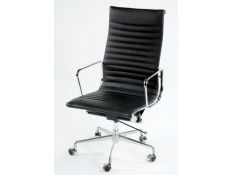 Height-adjustable office chair with wheels, chrome-colored aluminum structure and black leather upholsteryDelivery time10 to 20 daysDimensions in cmW 59 D 58 H 82/90