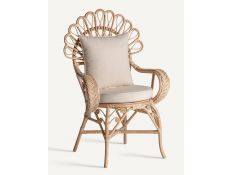 Outdoor dining chair with a wooden and rope frame and upholstered sand cushions. Perfect for al fresco dining.Dimensions in cmW 56 D 54 H 78Delivery time15 to 20 days
