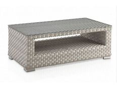 Coffee table in rattan, with glass top for outdoor use.Dimensions in cmL 111 D 61 H 45Delivery time20 to 30 days