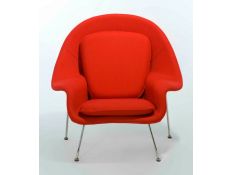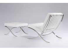 Barcelona Armchair + Ottoman by Mies Van der RoheChromium-plated frame, cushions filling in high resilient foam; in leather or sinthetyc leather; leather straps.