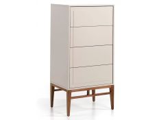 Tall chest of drawers with 5 drawers made of mdf veneered in ash wood and white lacquered with white painted metal structureDimensions in cmW 64 D 40 H 142Delivery time10 to 15 days