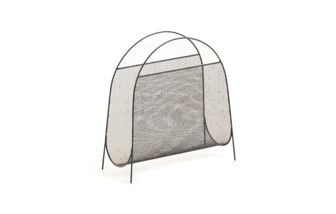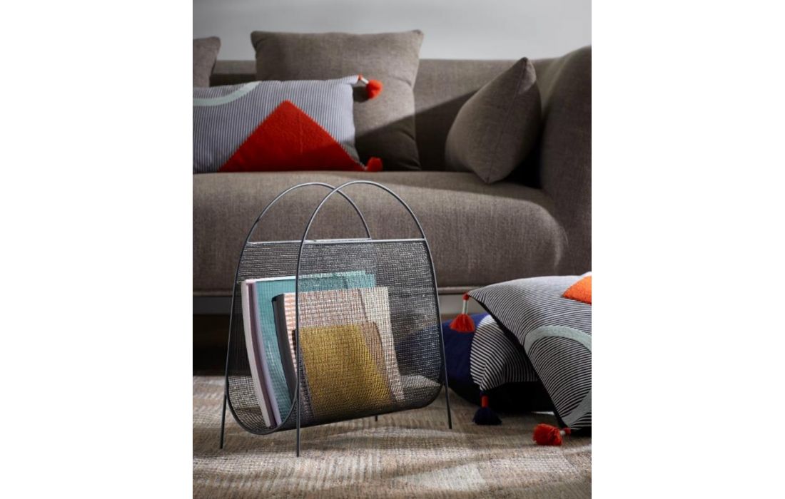 Magazine holder made of steel with a gray finish, design based on curves.