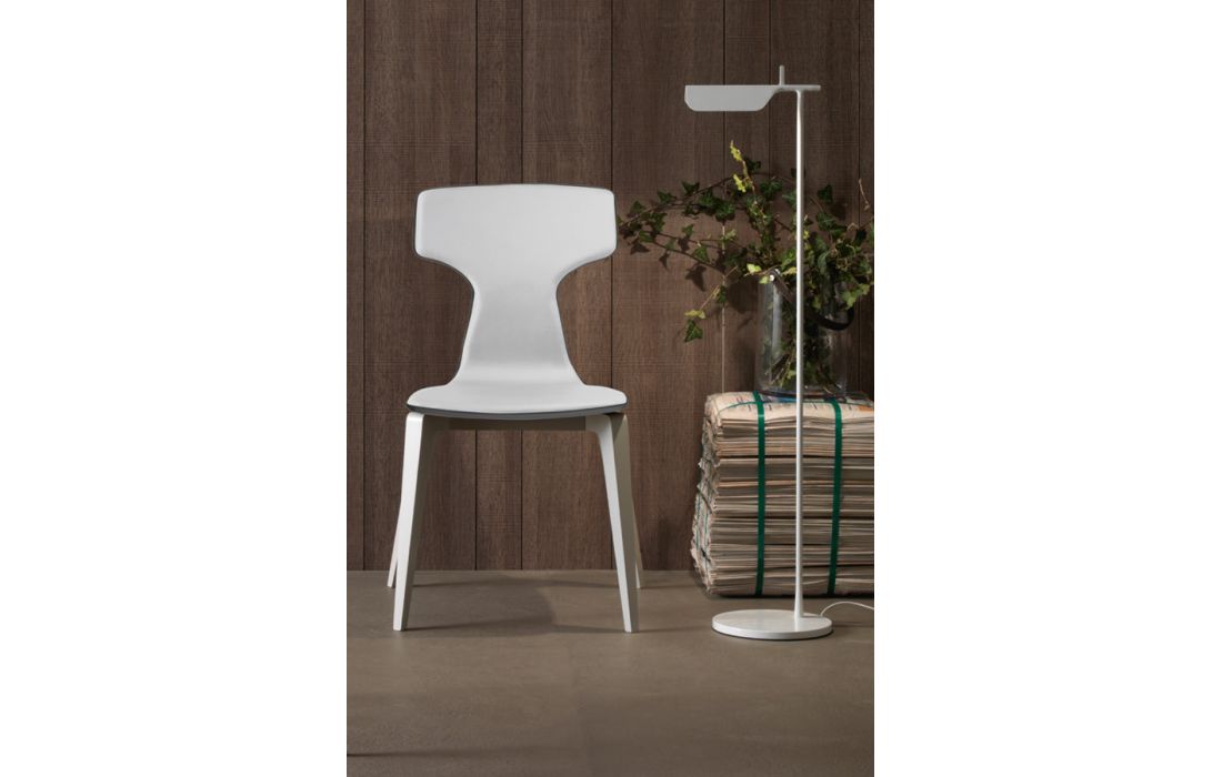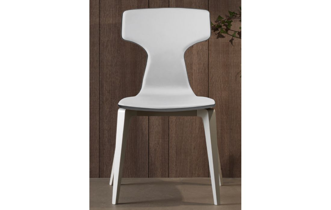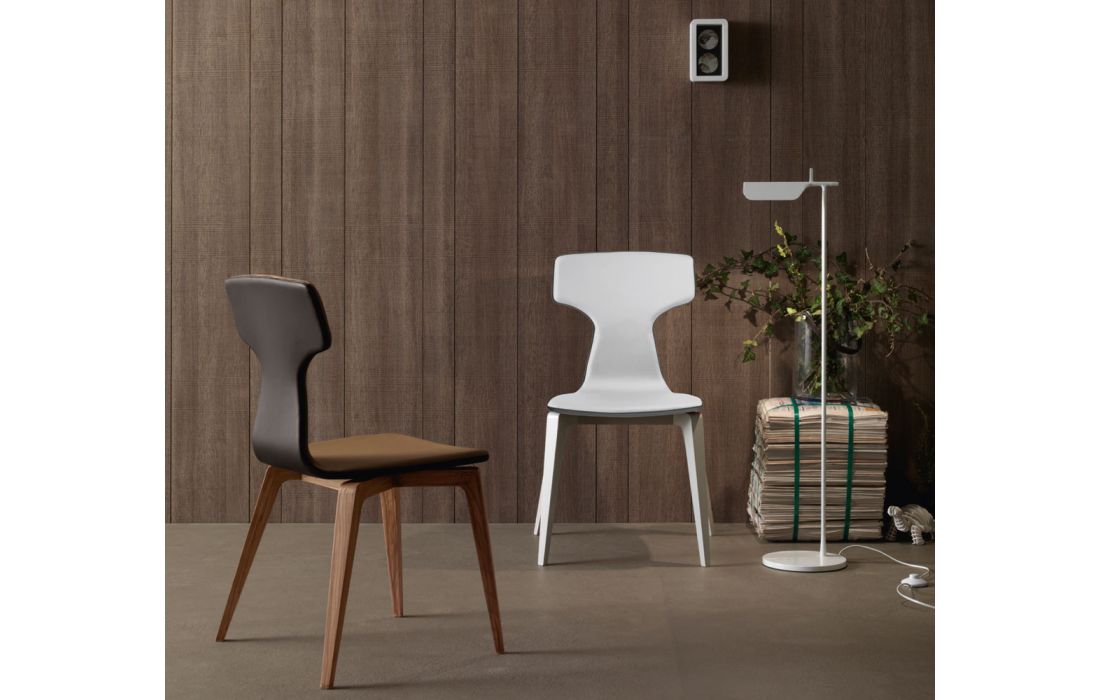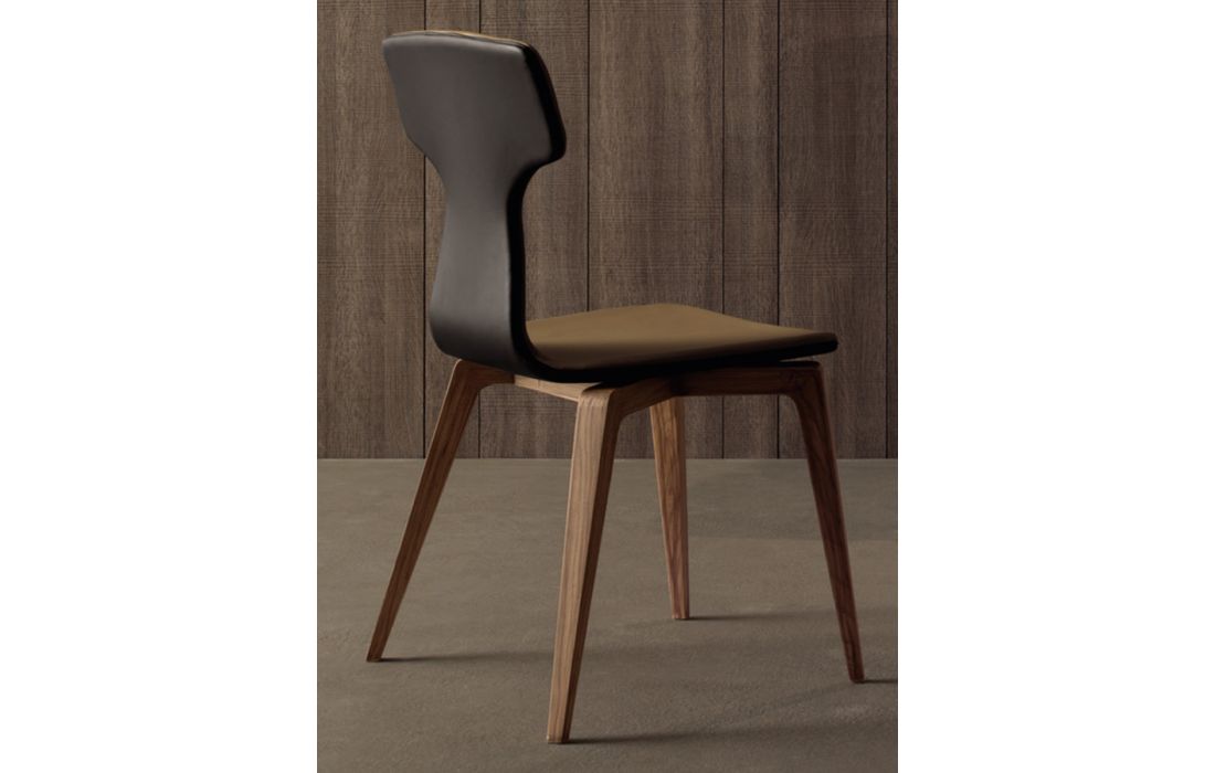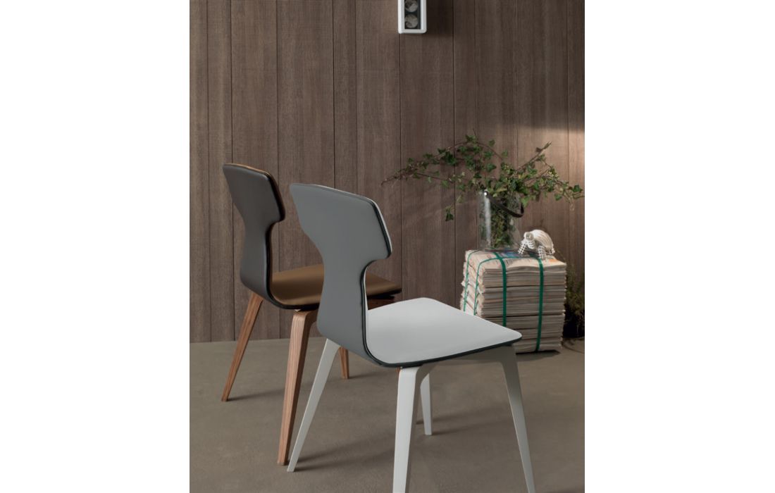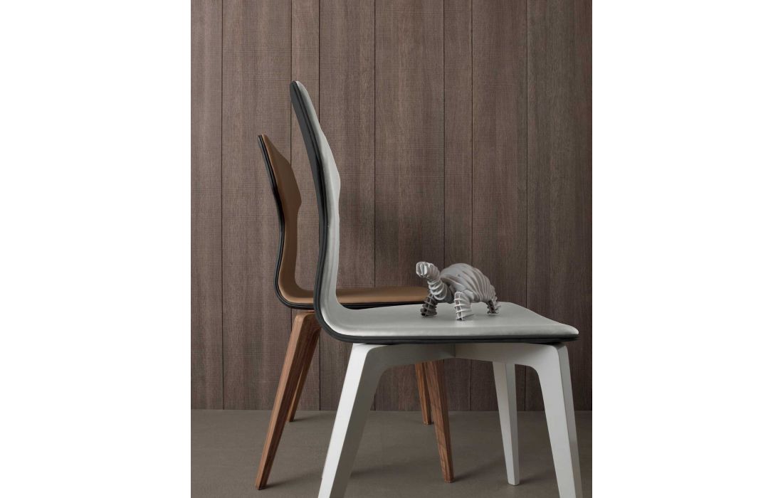 Chair with legs in solid walnut or oak wood painted. seat and back in wood covered with imitation leather or real leather