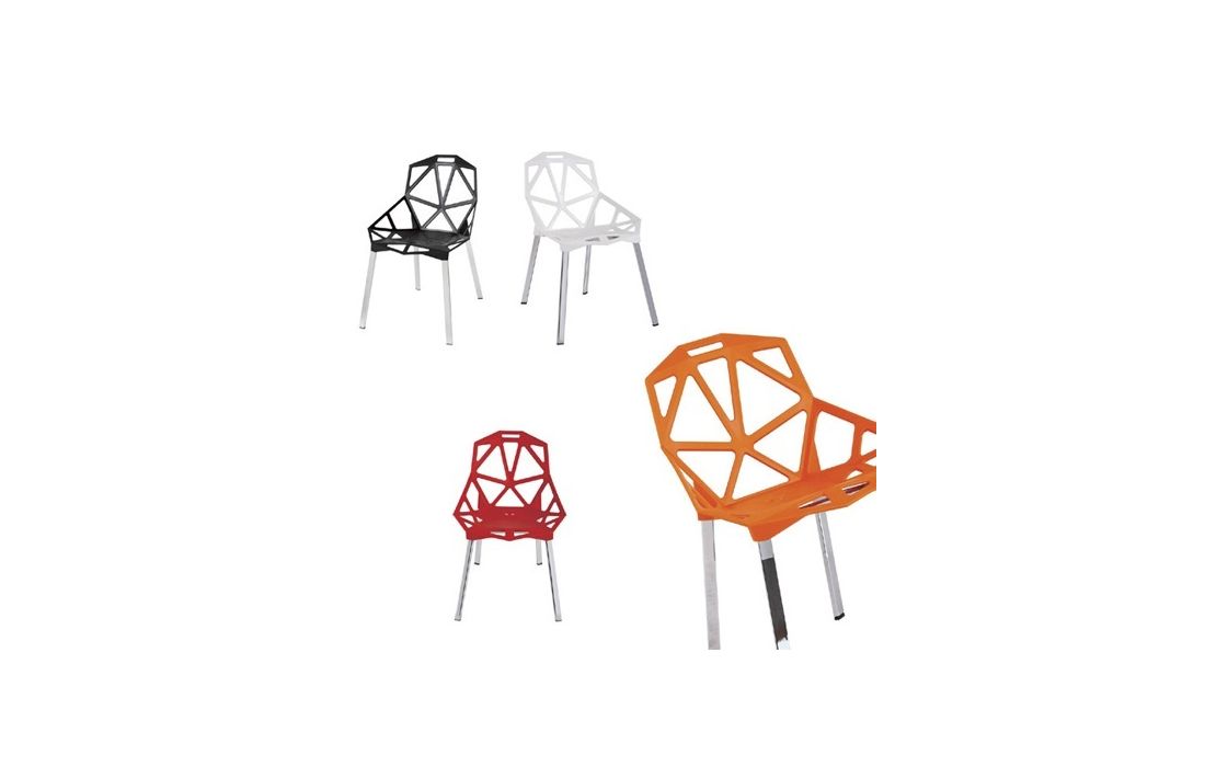 Chair with structure in polycarbonate of white, black, green and red color with aluminum feet.