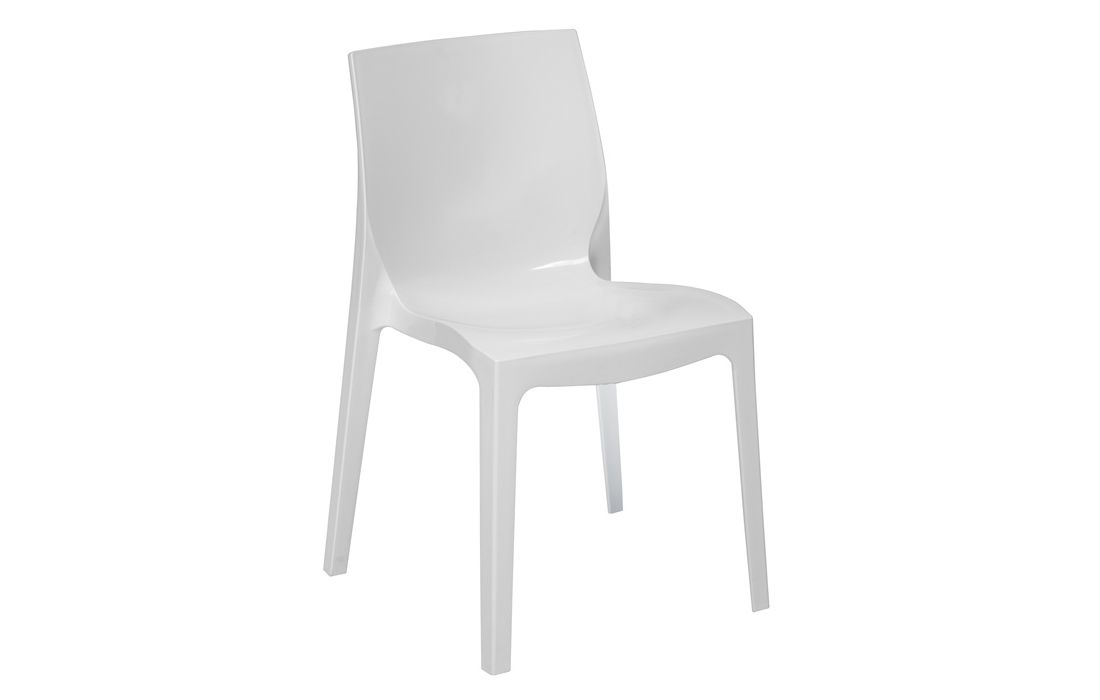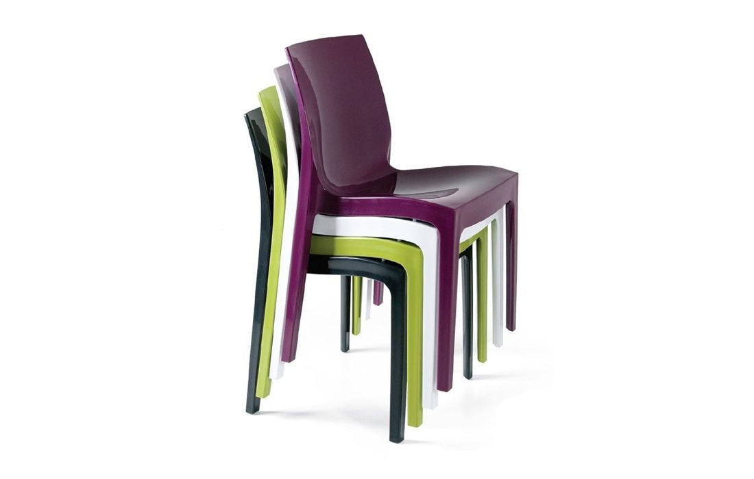 Chair with polypropylene structure in black, white, gray, red or green luster, reinforced in fiberglass.