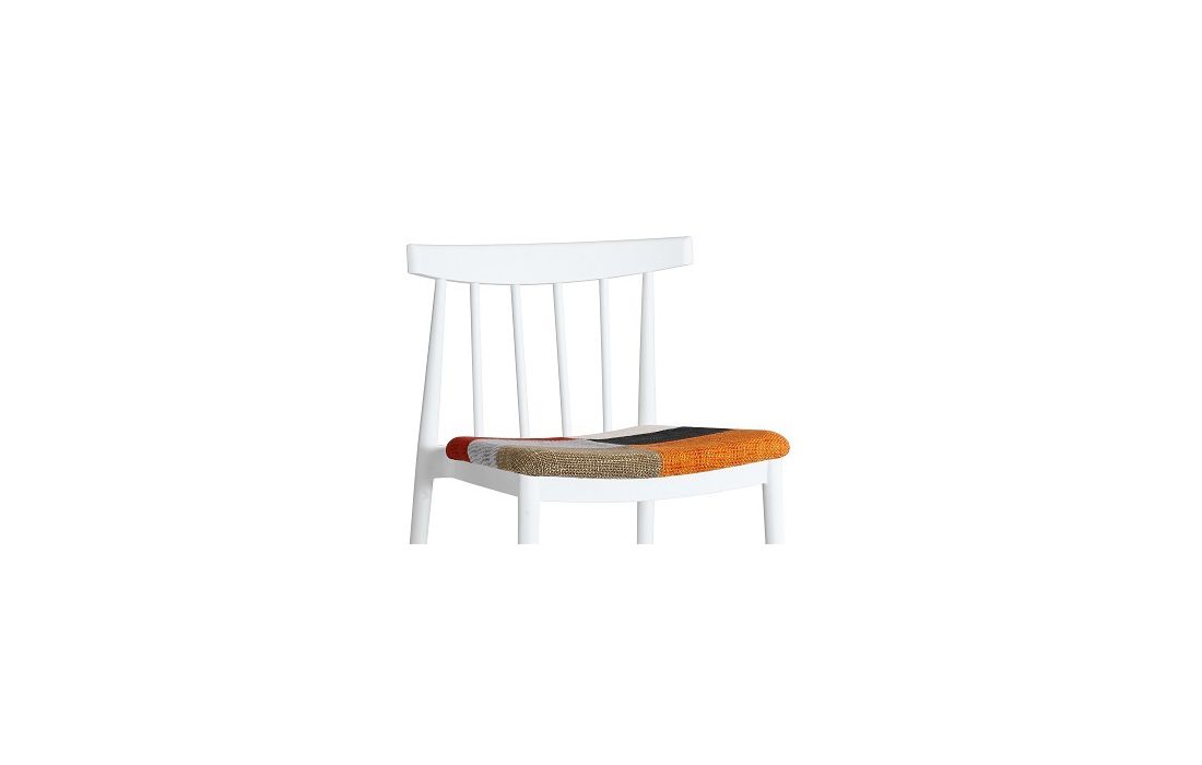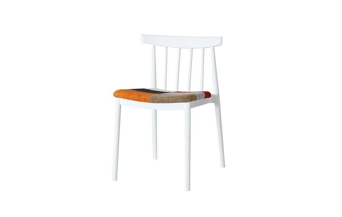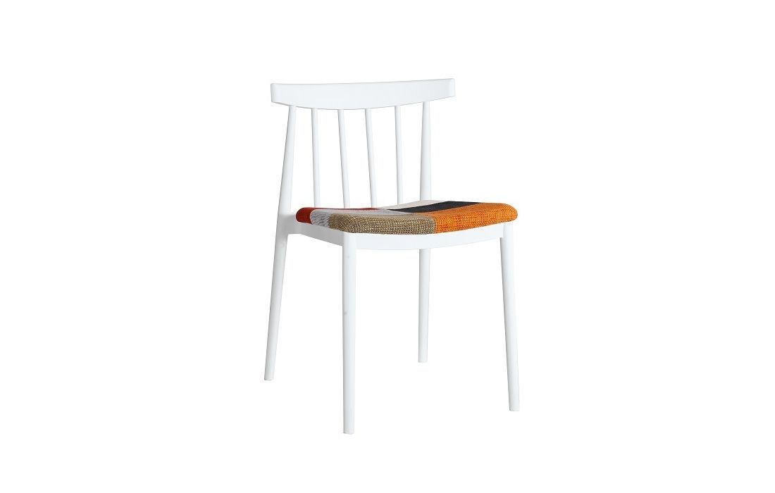 Chair with structure in white polypropylene, seat in patchwork fabric.