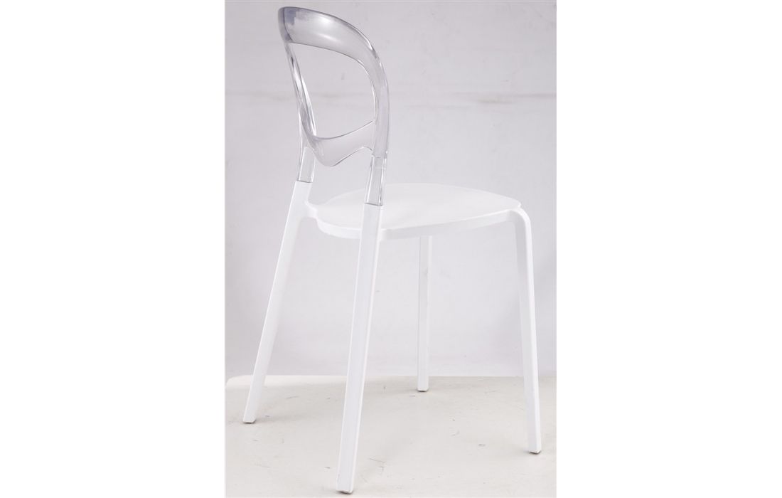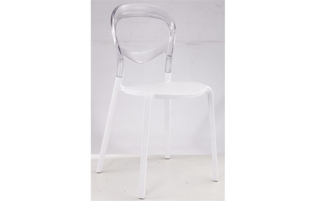 Chair with structure and seat in polypropylene of white color and coast in polycarbonate trasnparente.