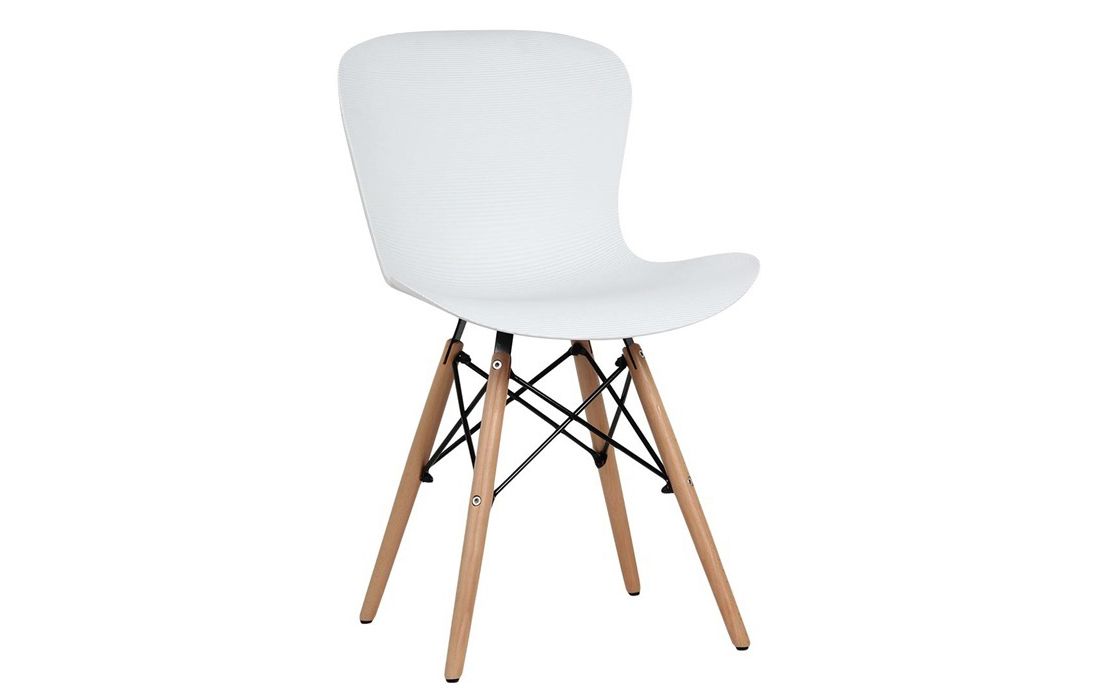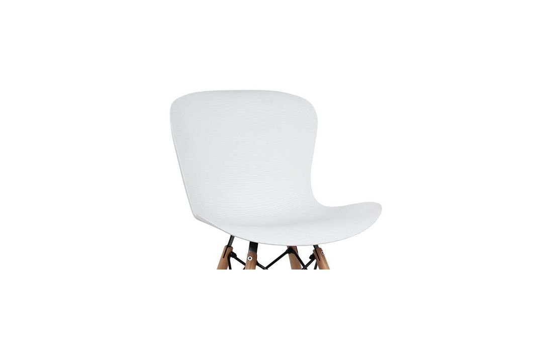 Chair with structure in white color or black polypropylene and legs in solid beech wood with metal of detail.