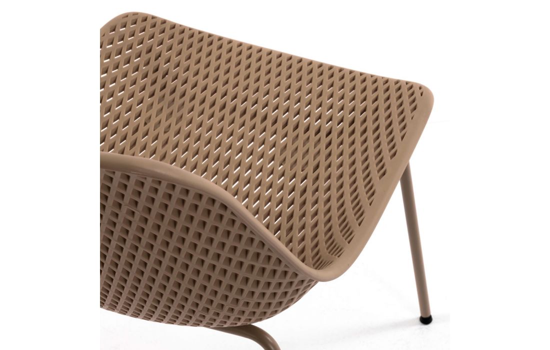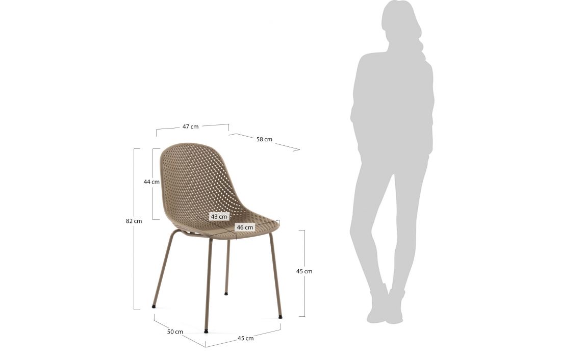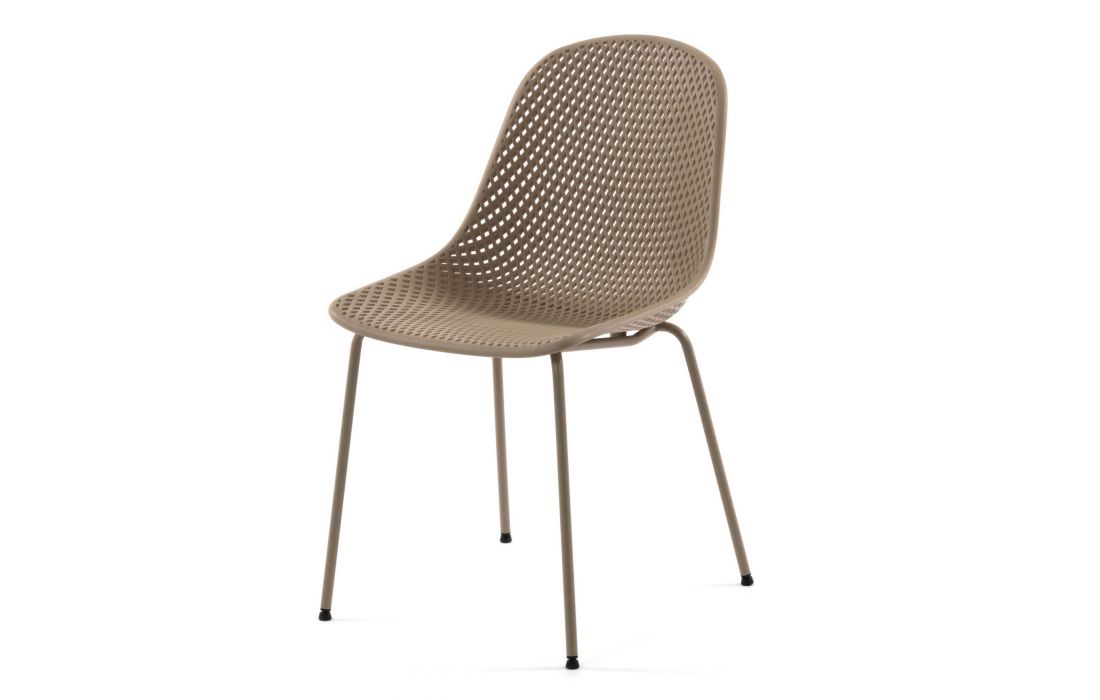 Beige recyclable plastic chair with metal structure. It is a versatile chair, ideal for areas as different as your kitchen, dining room or office. A chair with infinite possibilities for your interior.