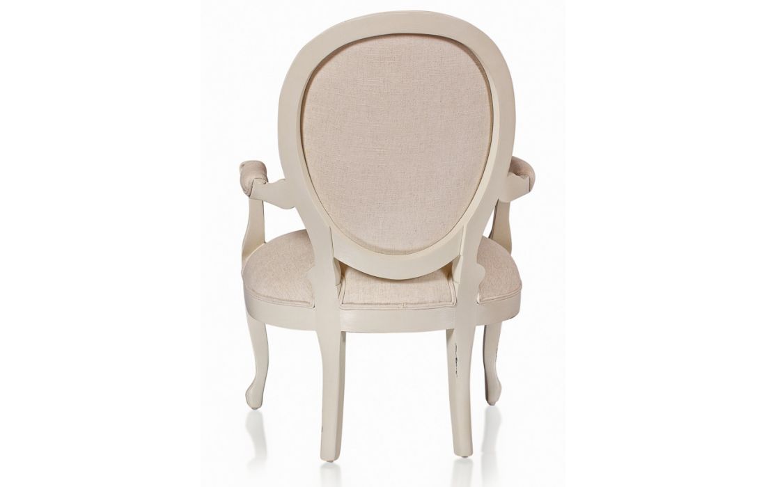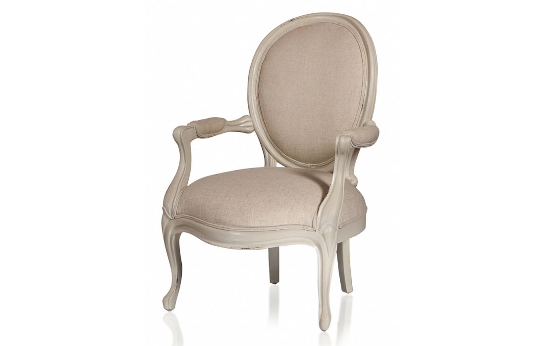 Classic armchair, wooden structure, seat and fabric covered coast.