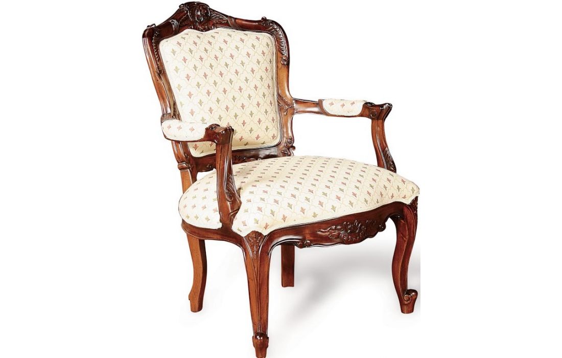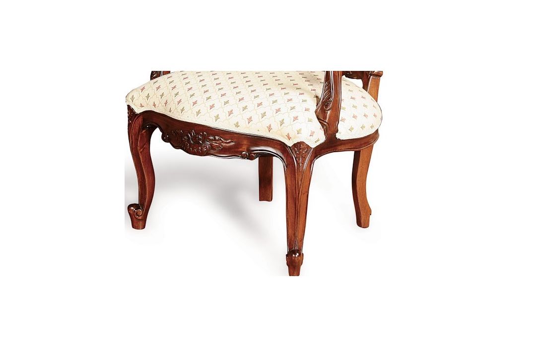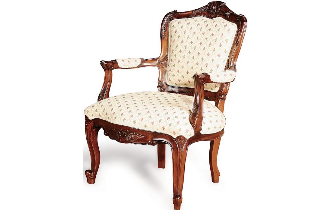 Classic armchair with wooden structure and covered in fabric