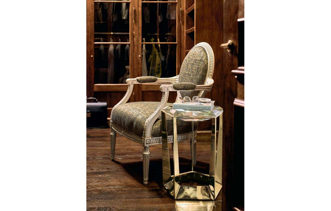 Armchair with wood structure and covered in fabric