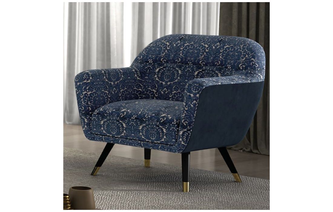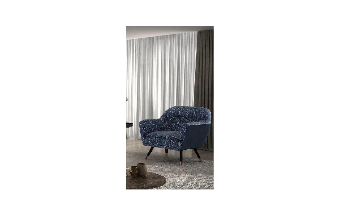 Armchair in various possible coatings, wooden feet with gold metal detail.