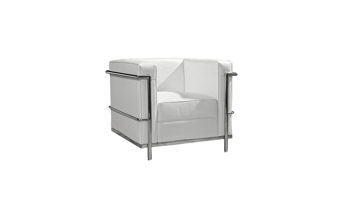 Armchair with chromed metal frame in black or white synthetic fur