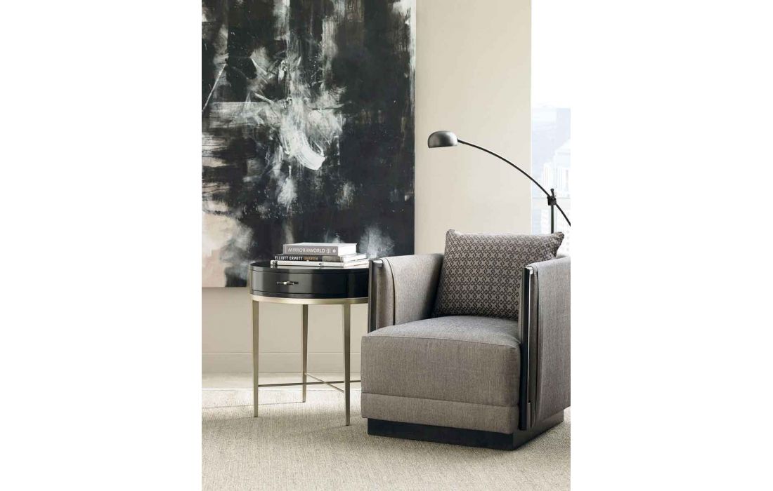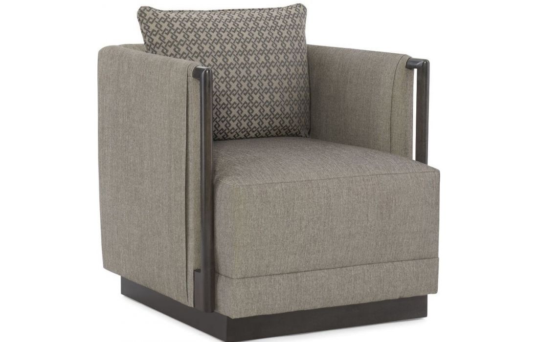 This modern armchair acquires a linear personality, in this deep piece with very careful details. The style of the piece is accented by two smooth wooden arms with a high gloss finish. The armchair rests on a wooden base, low and decorated with a cushion in a geometric pattern