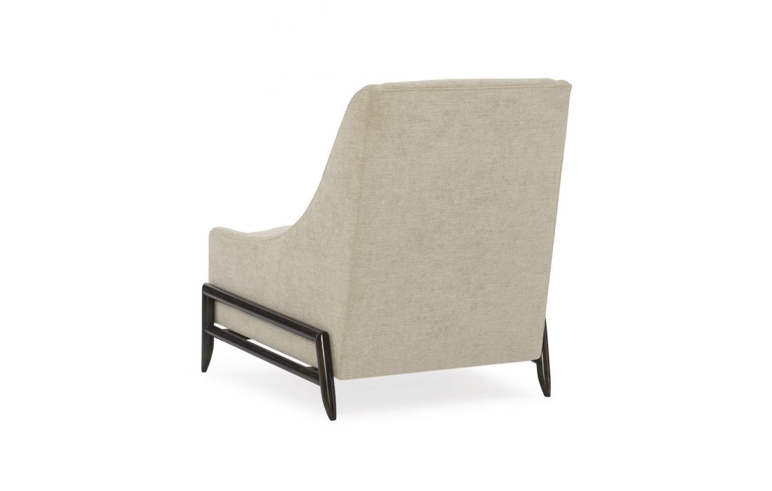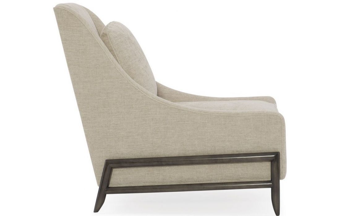 The design of this chair consists of a completely straight top back, elegant lines and low arms that go down to the base of the seat. This fully upholstered piece acquires an industrial feel with a finished wood base in high gloss. Accompanied by a cushion that brings a personal style to this high chair