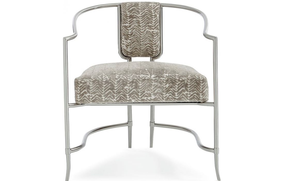 This complex but comfortable, high style chair has no equal. The expressive shape of tubular metal is finished in lightly brushed chrome, while the padded seat and backrest with a touch of metallic luster in the structure delivers luxury, the pinnacle of sophistication