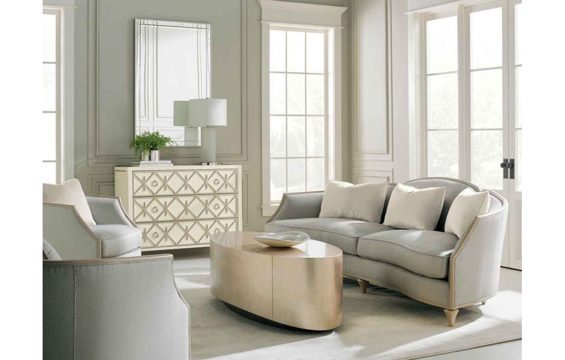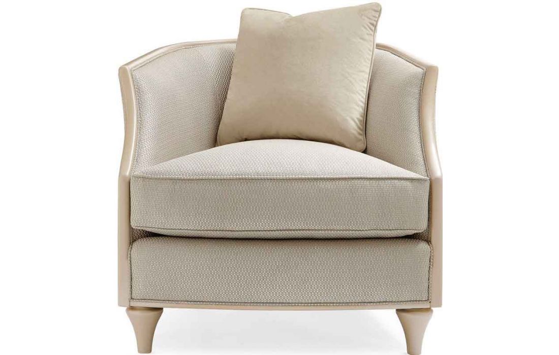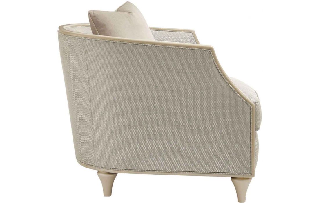 The wooden frame of this high chair highlights the elegant curves. Finished in a cream of bright golden fabric and pale gray fabric with a cream velvet pillow, this is an urban armchair to match in any living room or tasteful room