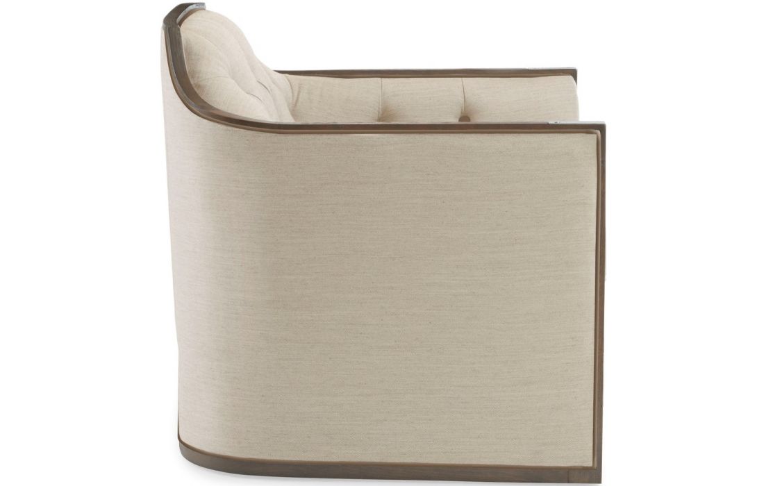 This armchair is the most excellent and elegant! Perfectly sized to flank a chimney, the attractive exposed seagull structure with a distinctive geometric shape on the back was detailed with rivets and nickel-plated metal brackets. The back of the arms and back, upholstered in a neutral fishbone fabric, has a classic appeal