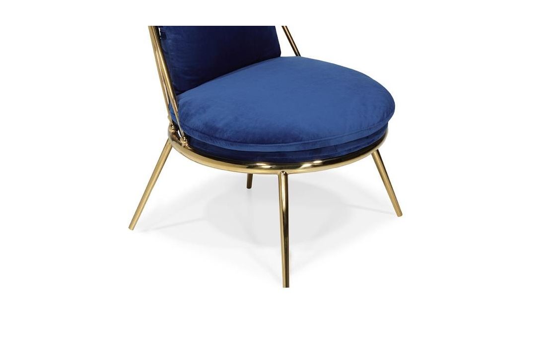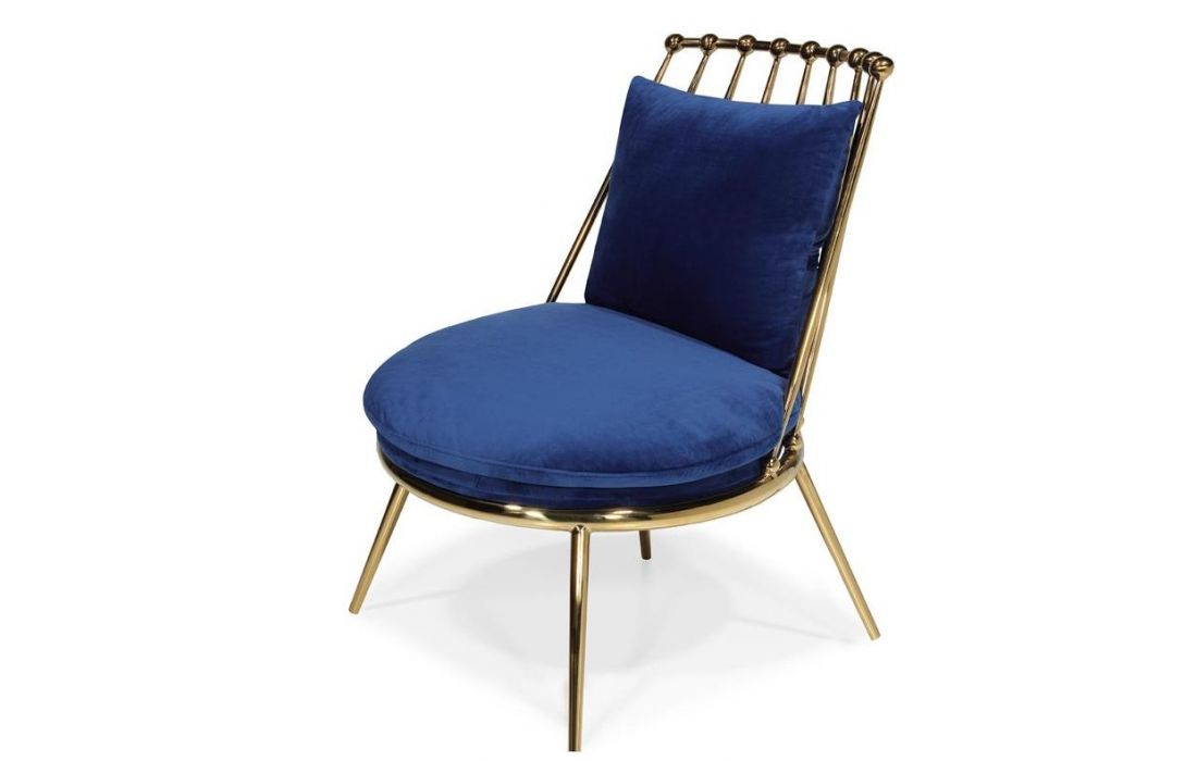 Armchair with golden stainless steel structure and velvet upholstery.