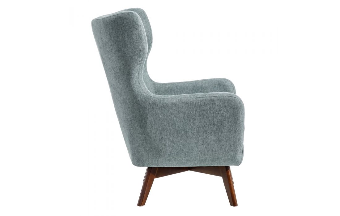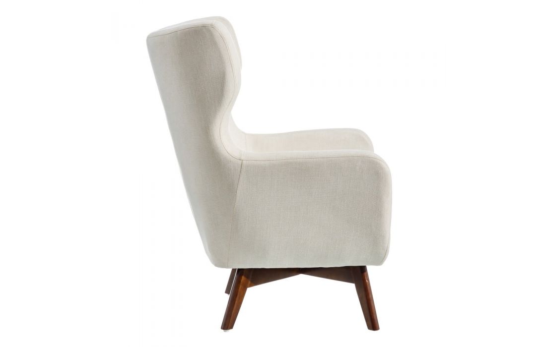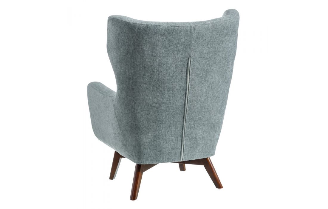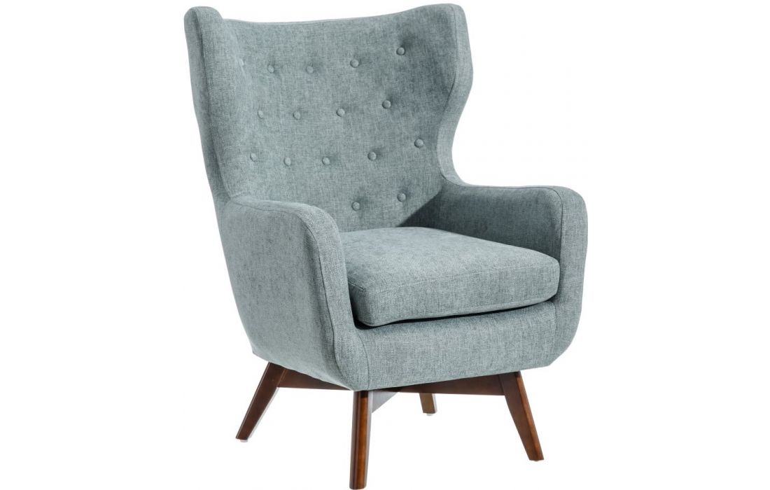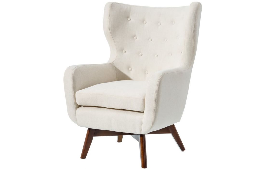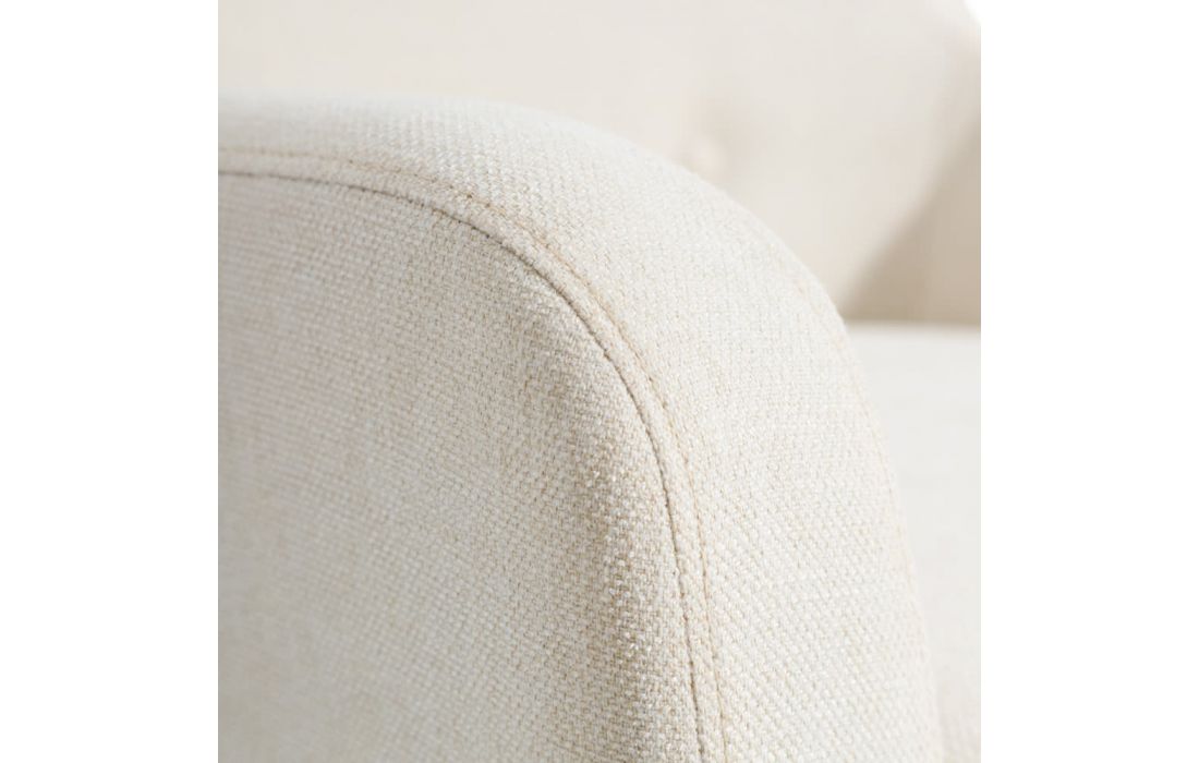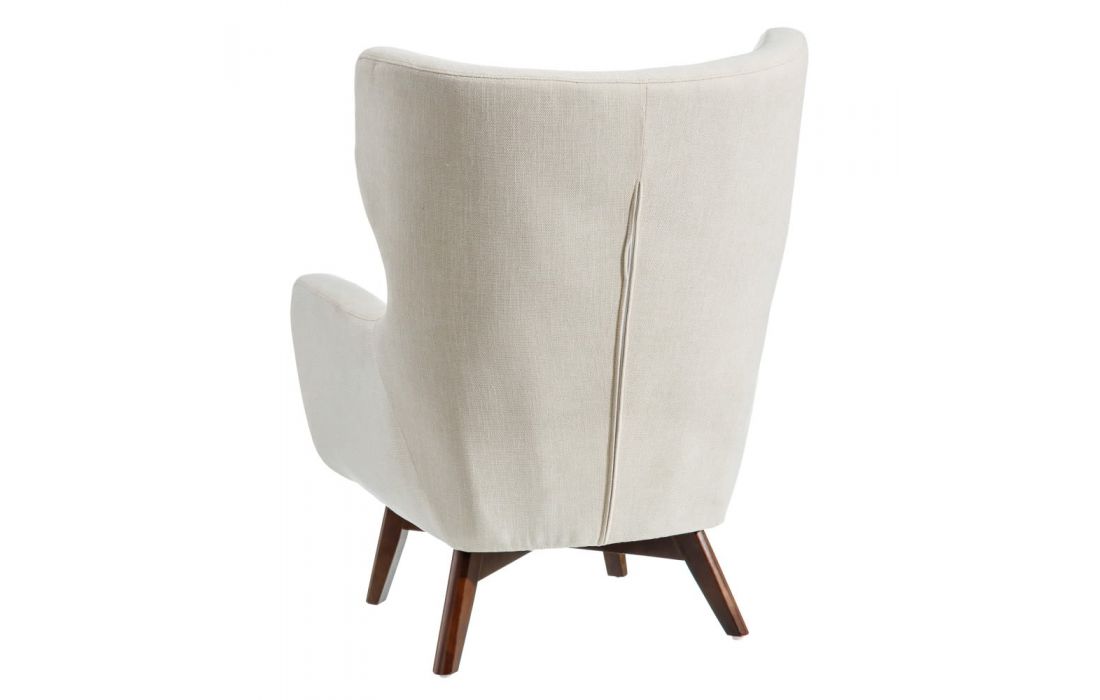 Armchair upholstered in cream or blue fabric, with 22cm high wooden legs