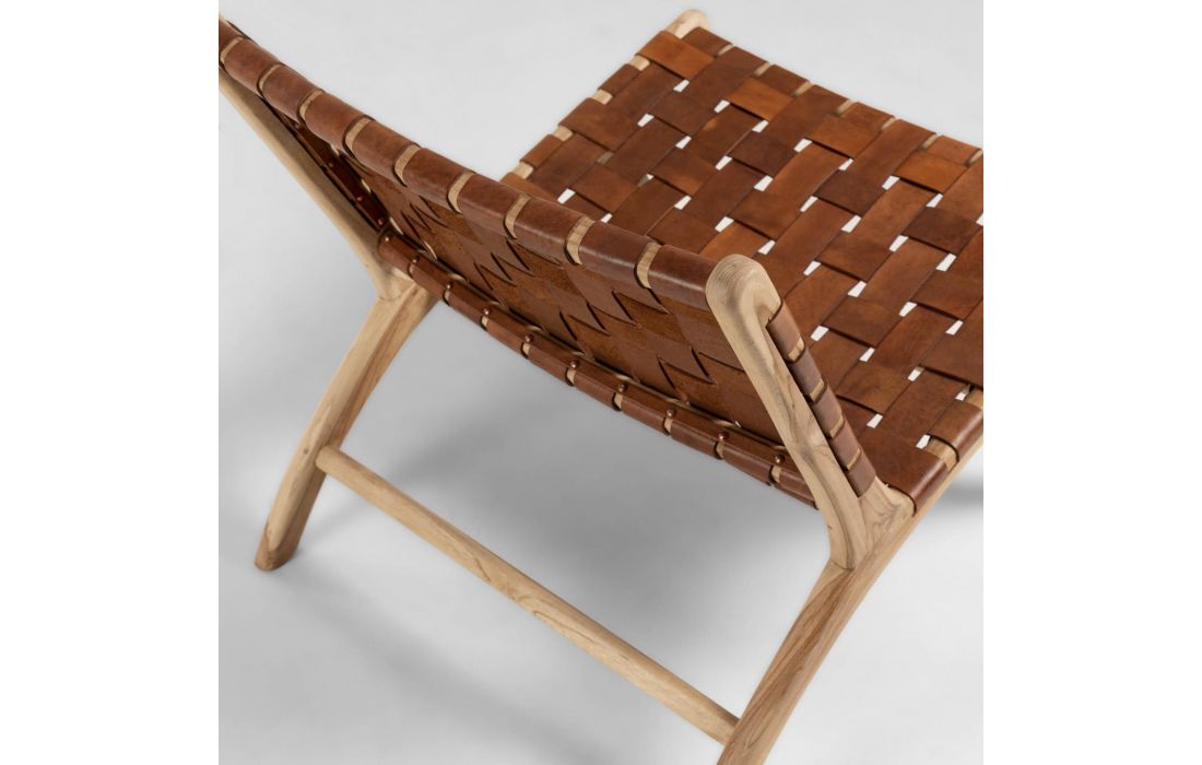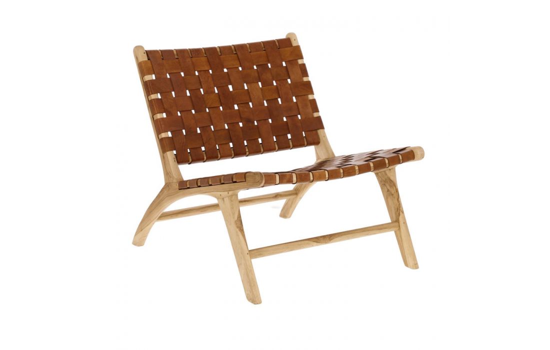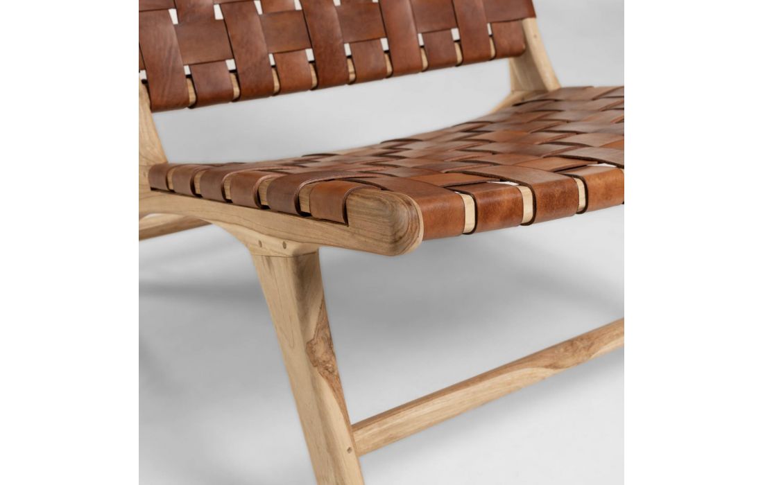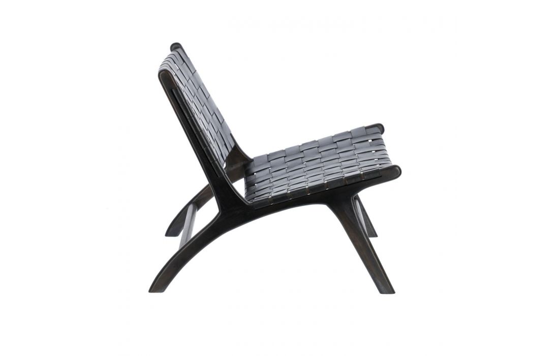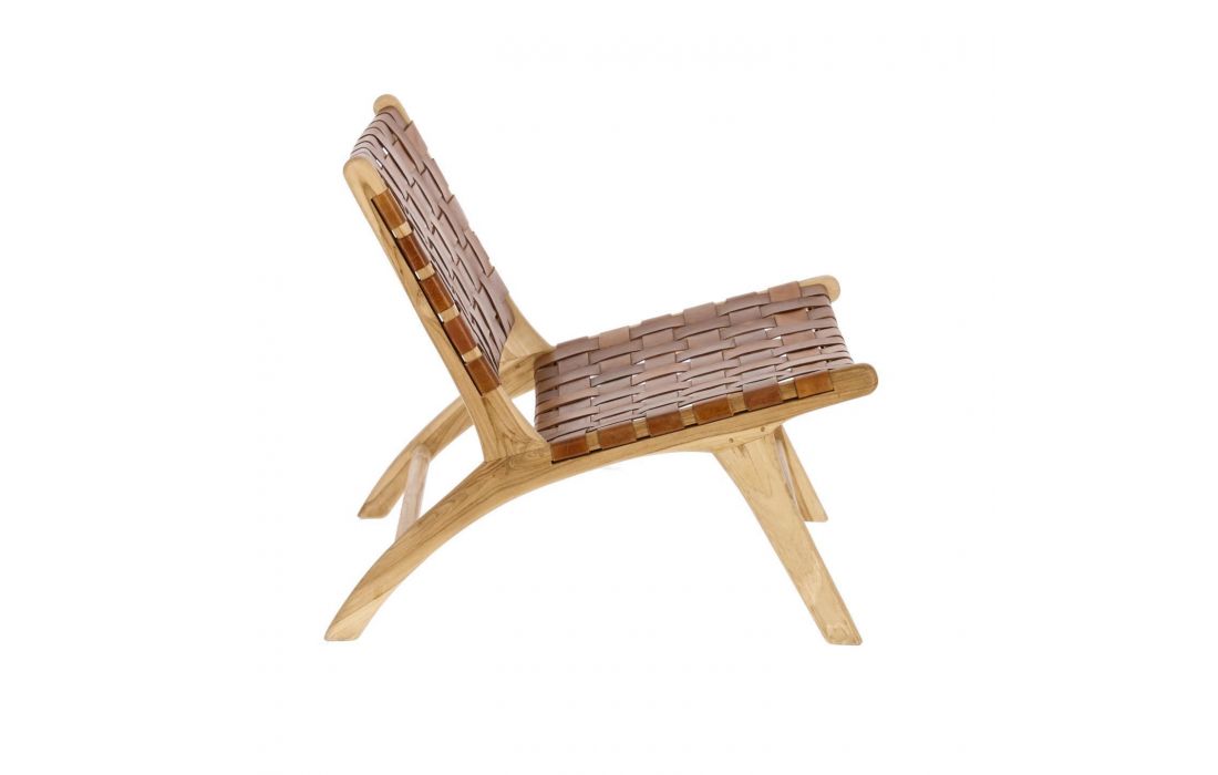 Armchair with structure made of solid mahogany wood (black) or Teak (brown) with seat and back made up of hand-woven leather straps.