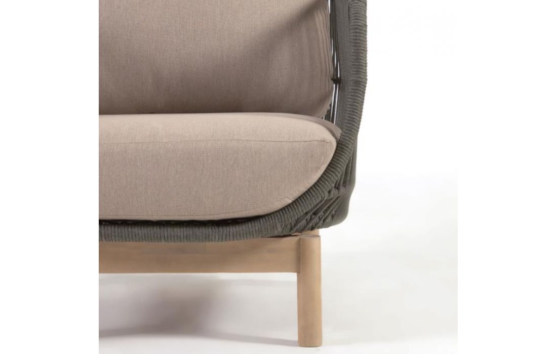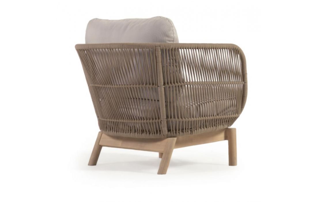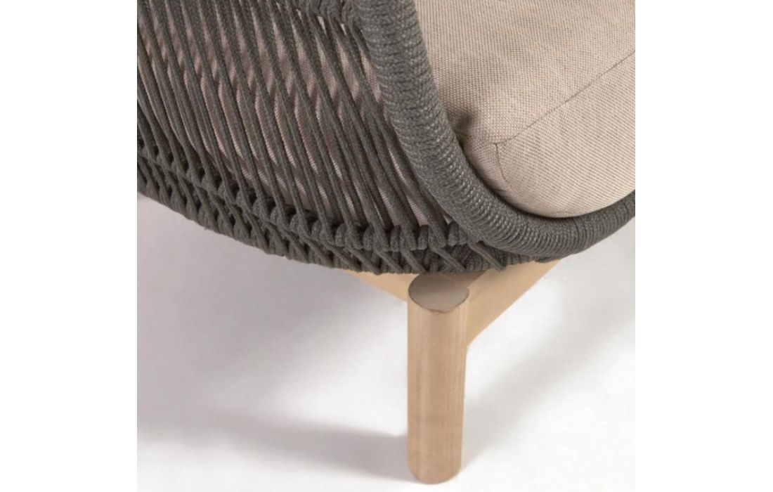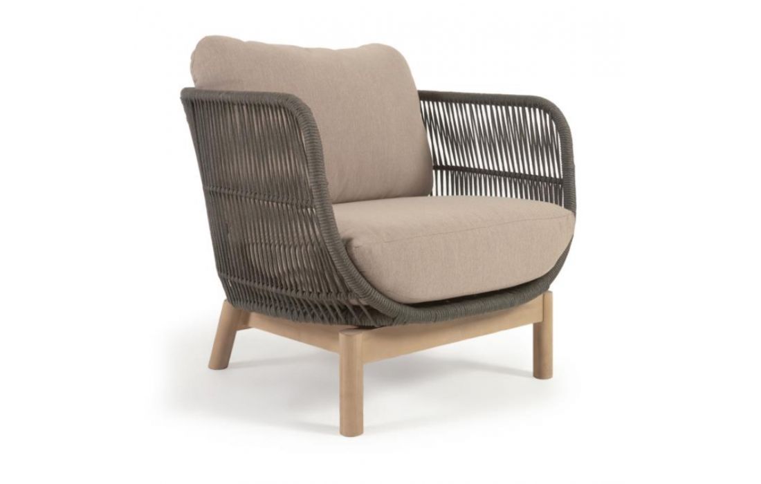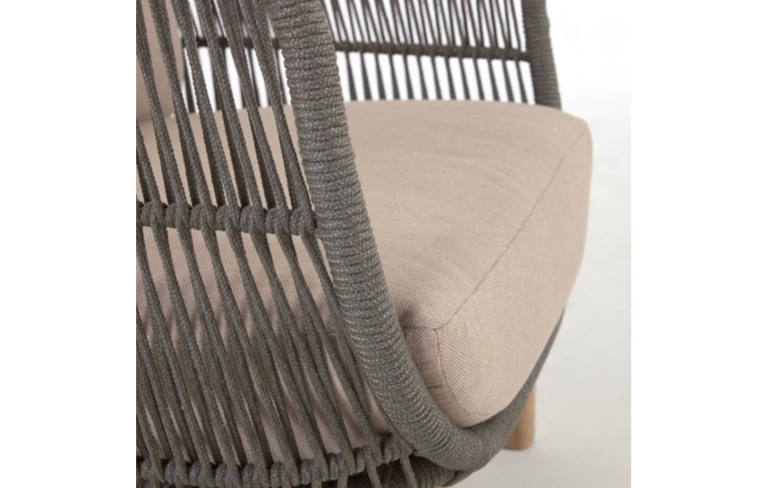 Rope armchair, with solid acacia wood feet and fabric upholstery.