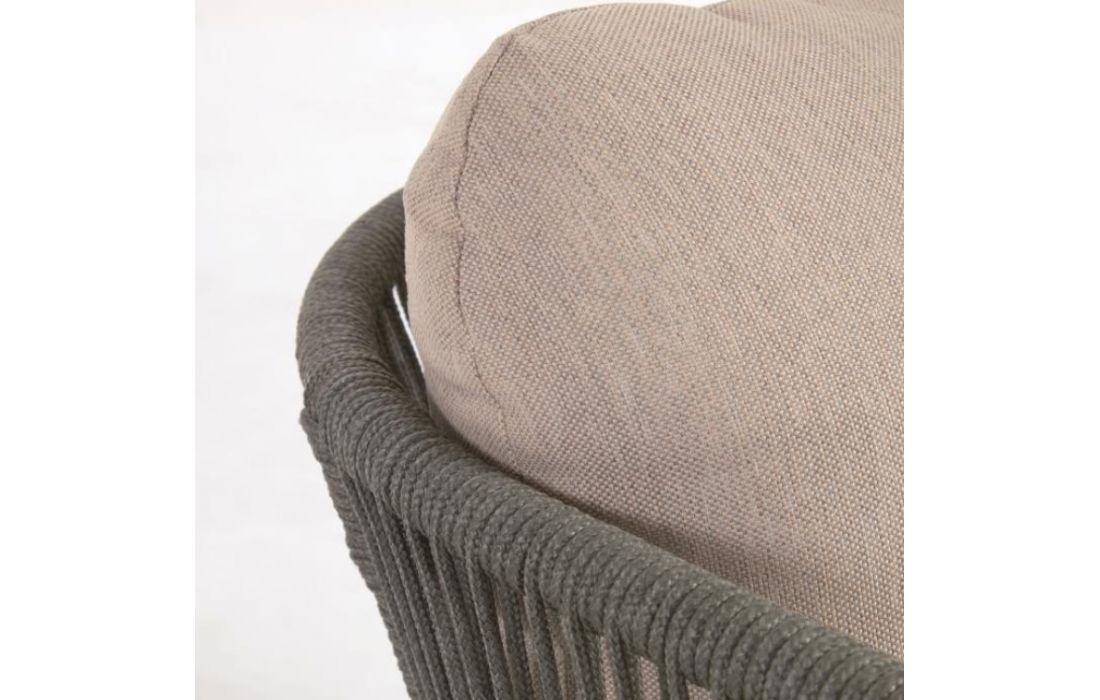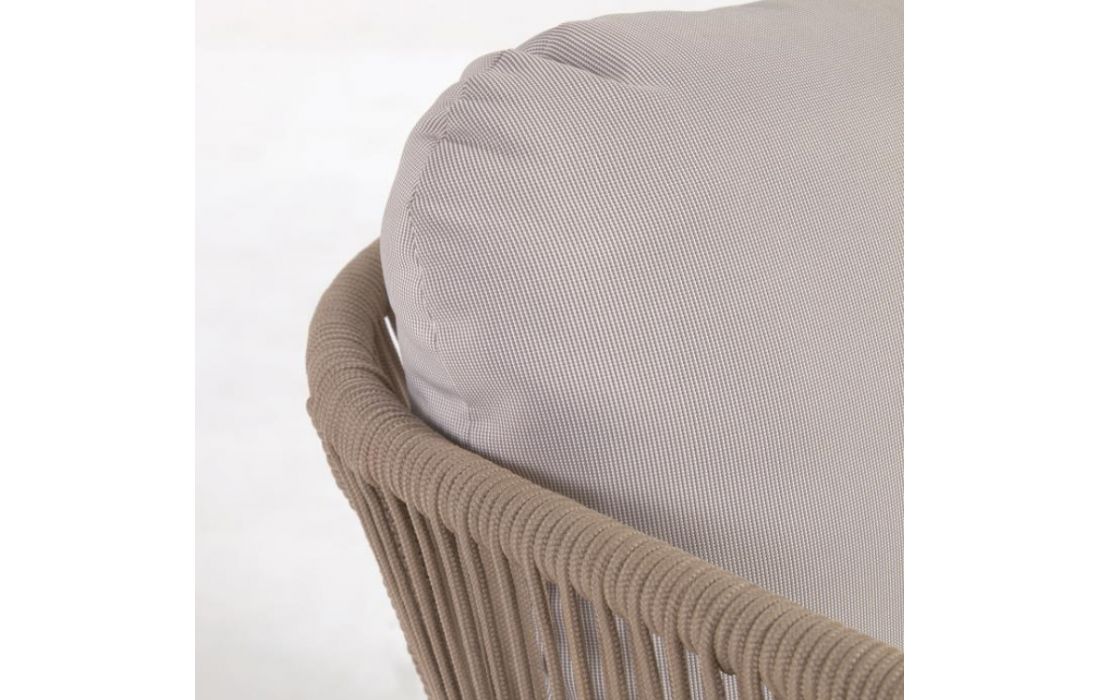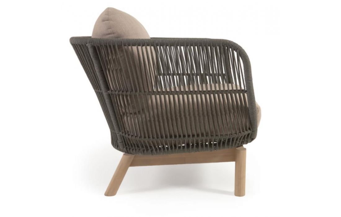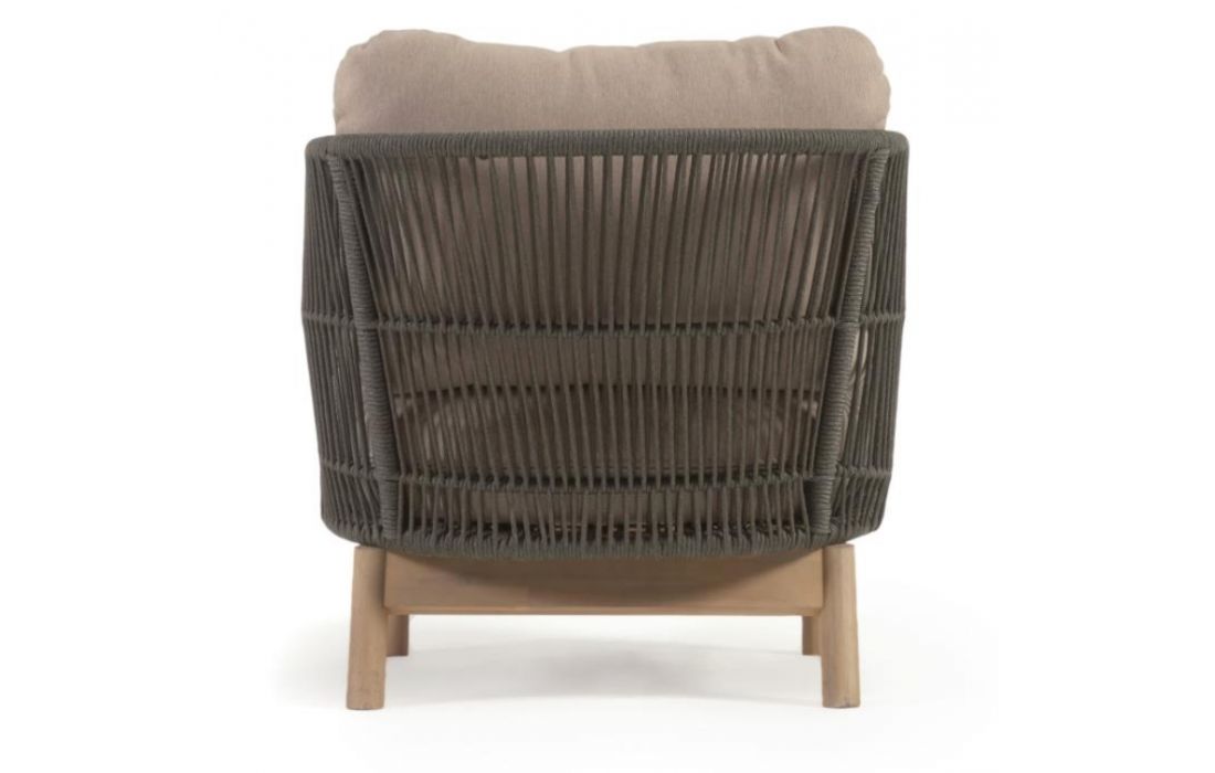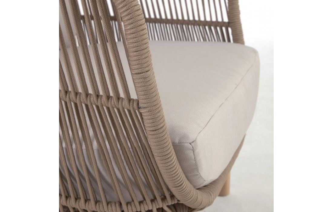 Rope armchair, with solid acacia wood feet and fabric upholstery.