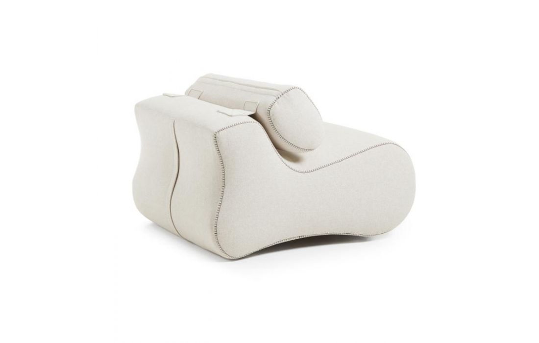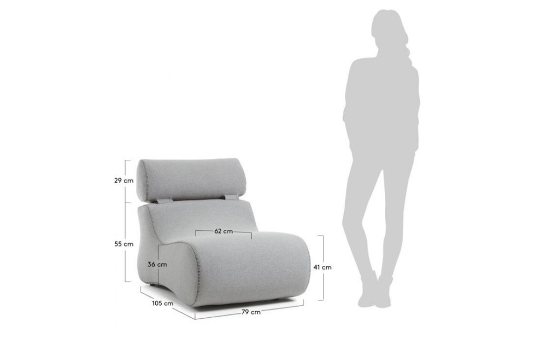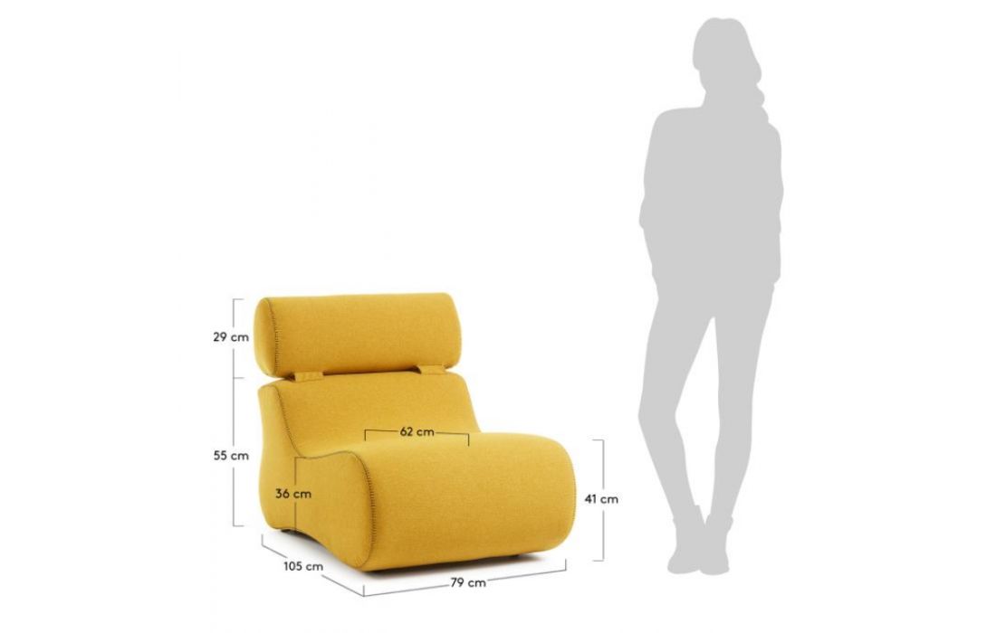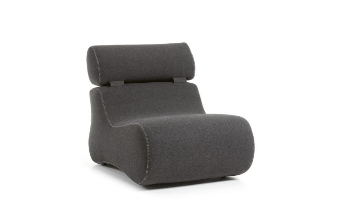 Armchair with wooden structure, covered in stain-resistant fabric in various colors with folding headrests