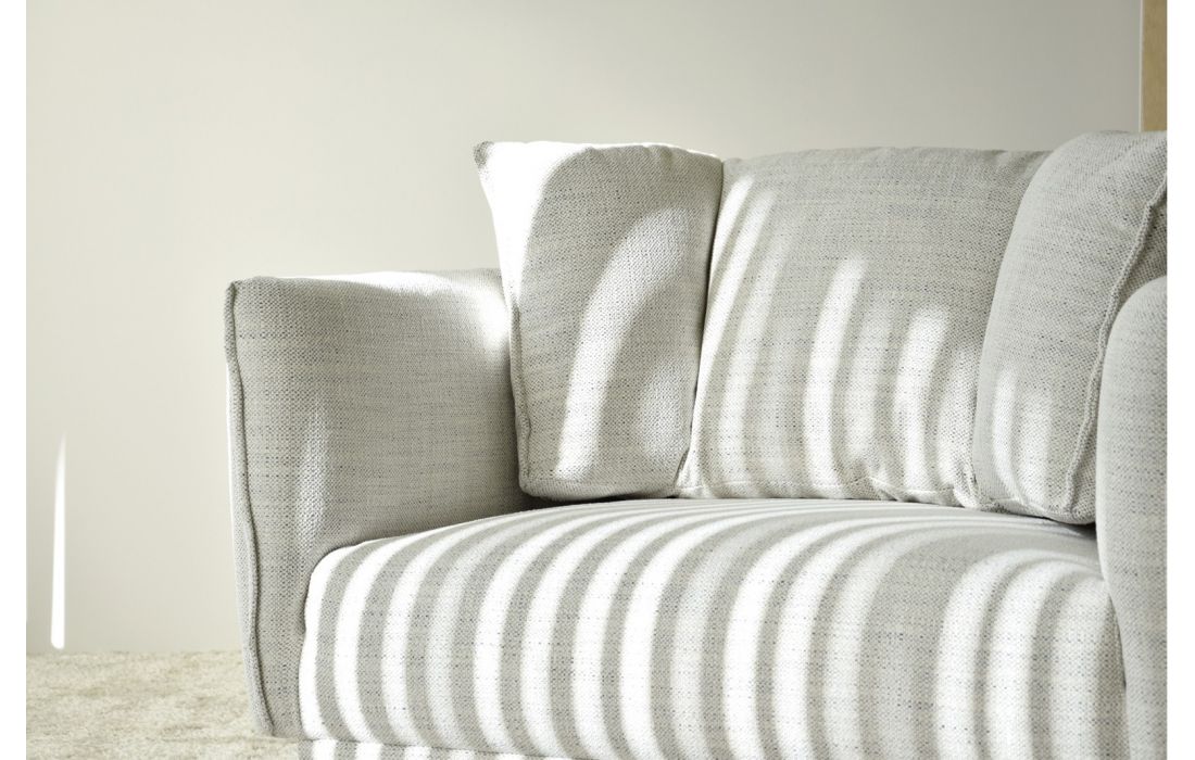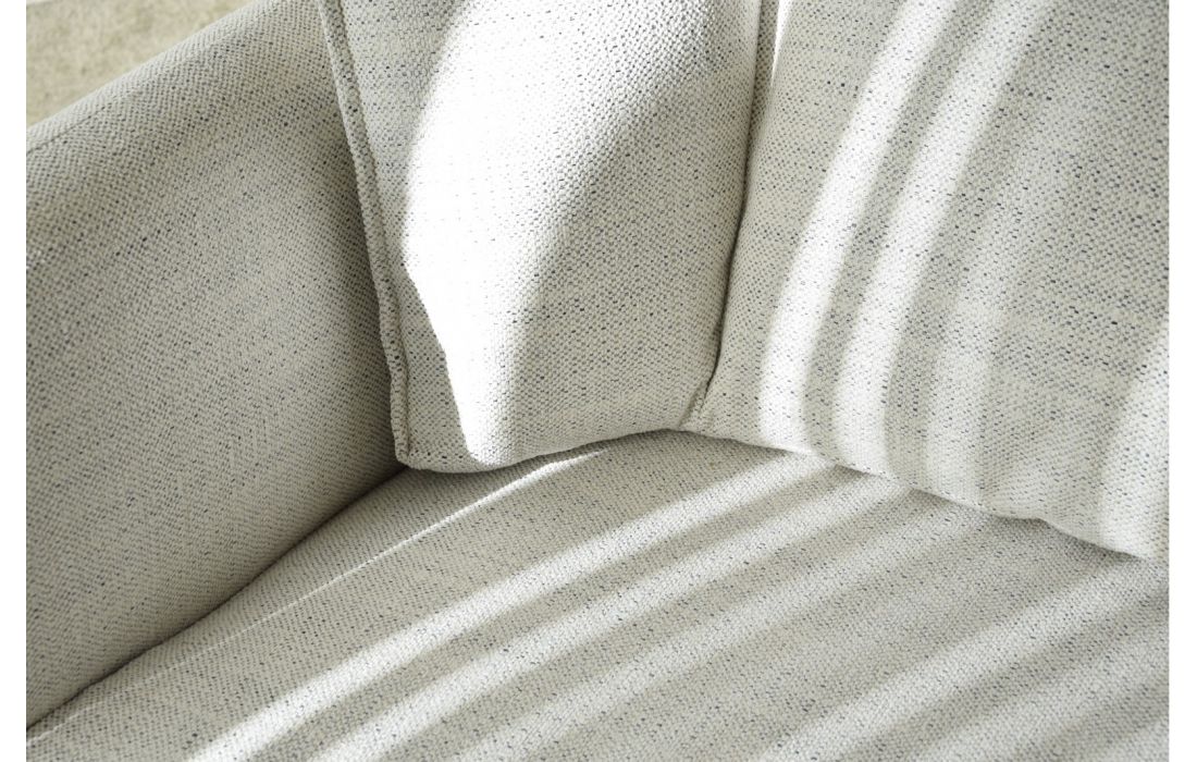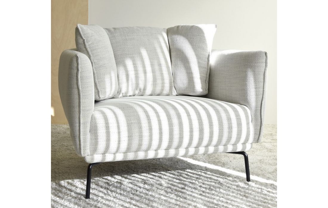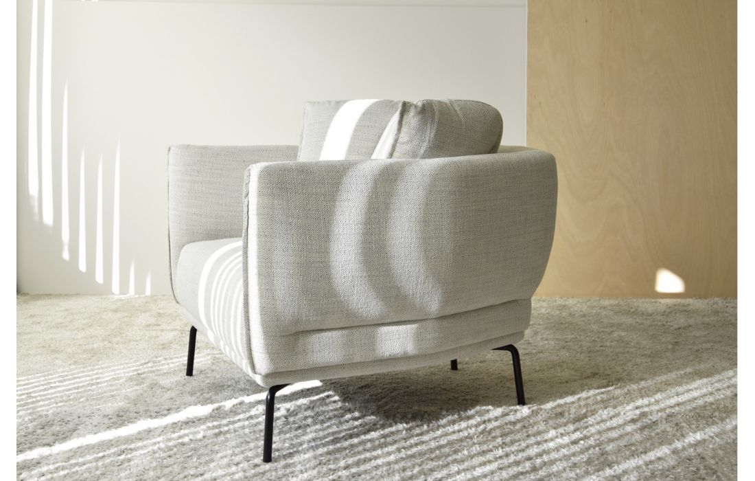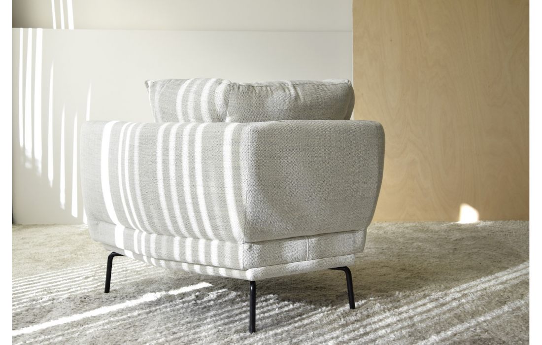 Armchair upholstered in fabric with matt black metal legs.