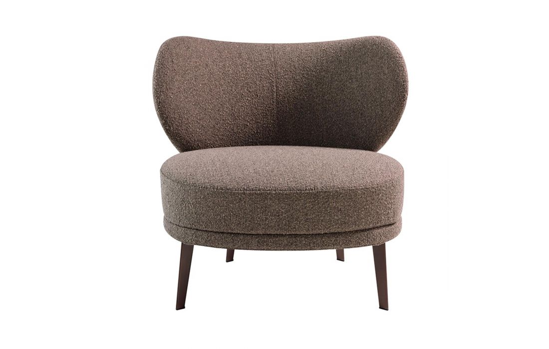 Upholstered armchair in textured fabric and brown epoxy steel legs