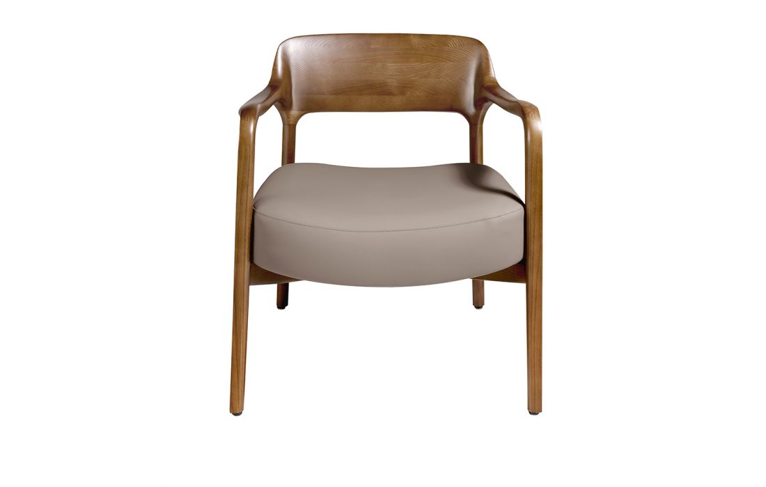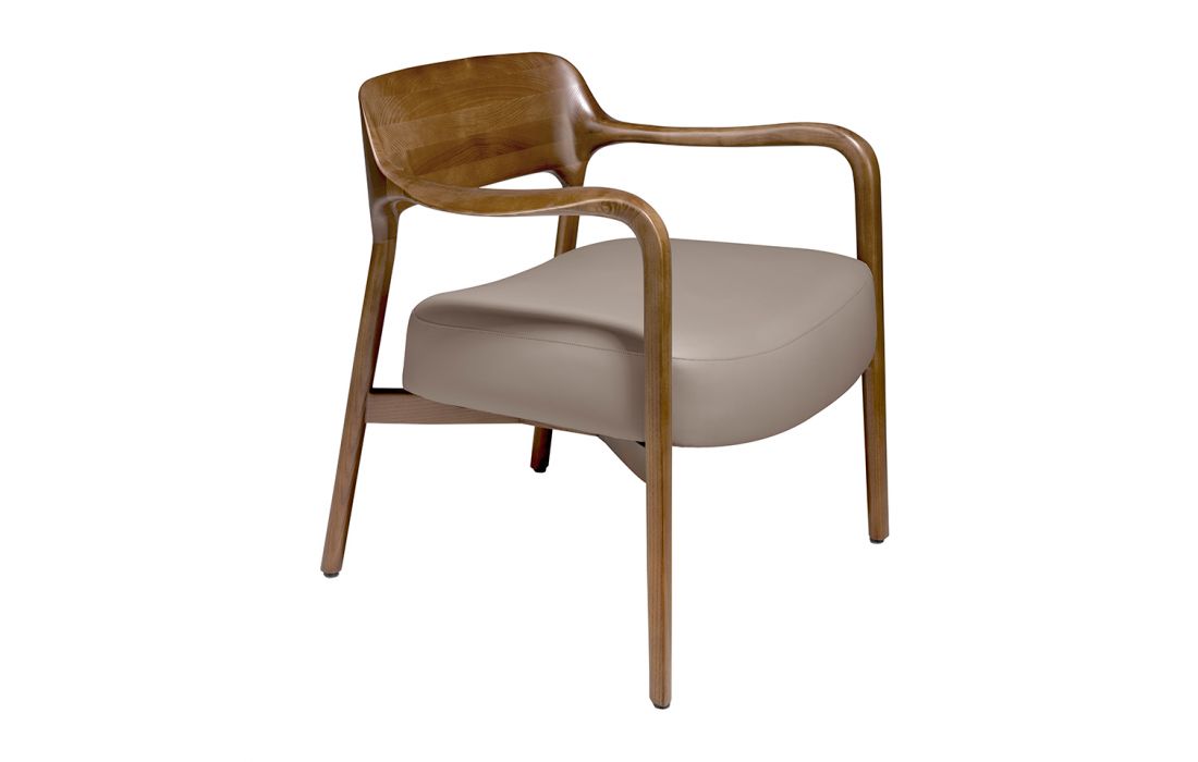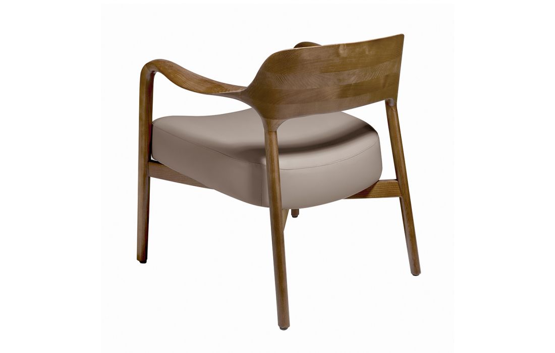 Armchair upholstered in synthetic leather with solid ash wood structure, painted in walnut color.