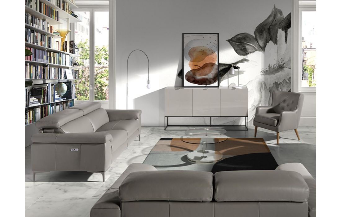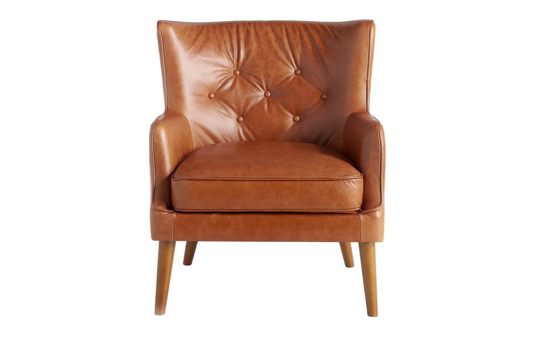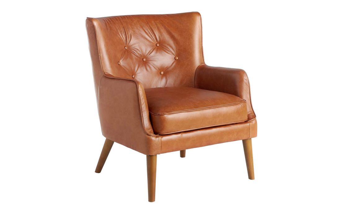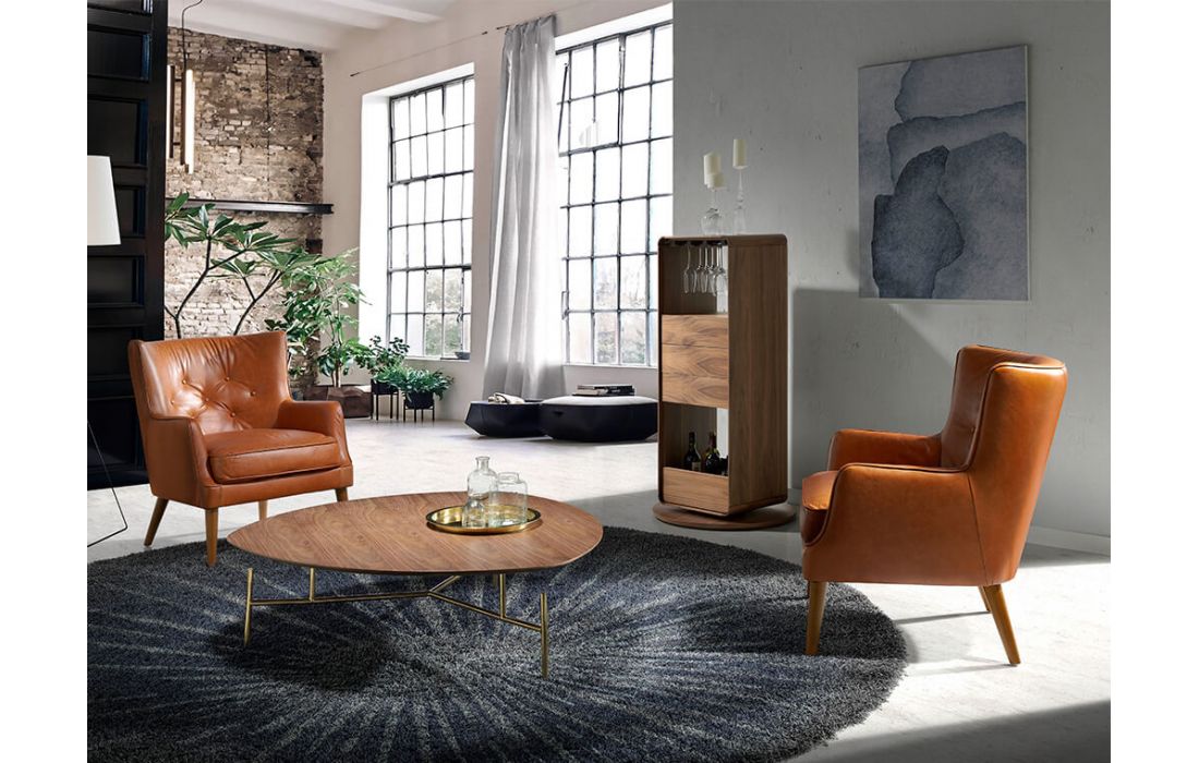 Confident armchair upholstered in leather. Internal structure in pine wood and structure of the legs in solid ash wood in walnut color.