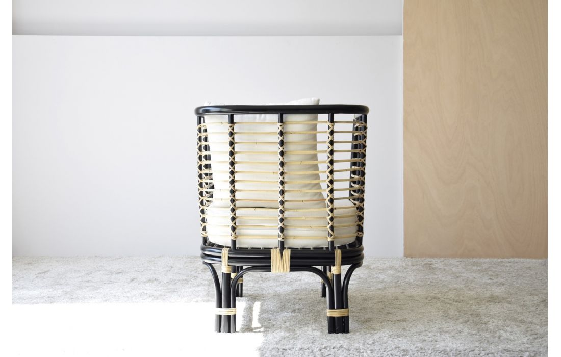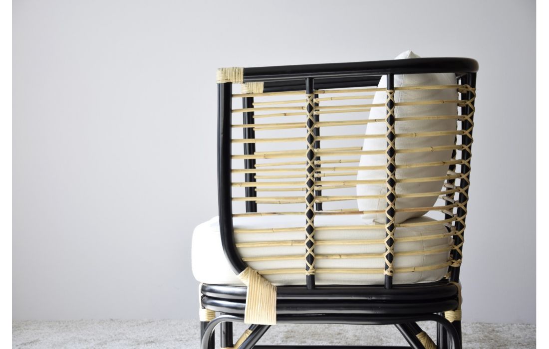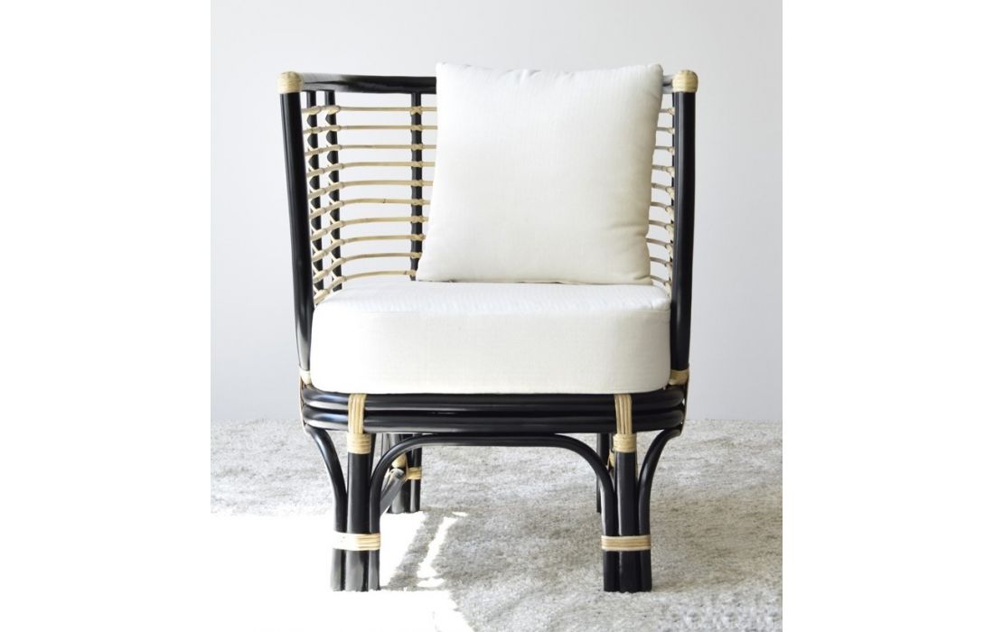 Armchair made in natural and black rattan, straw. Includes 100% cotton fabric cushion in cream tone.Recipient :