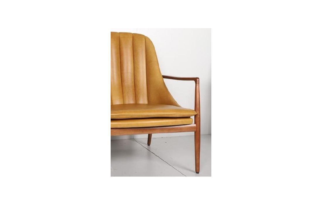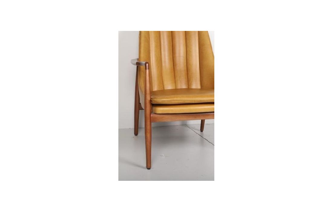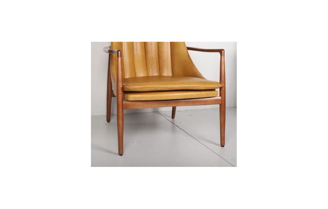 Armchair in ash solid wood and upholstery in fabric, synthetic leather or leather.