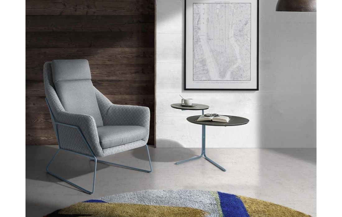 Fabric armchair with metal legs