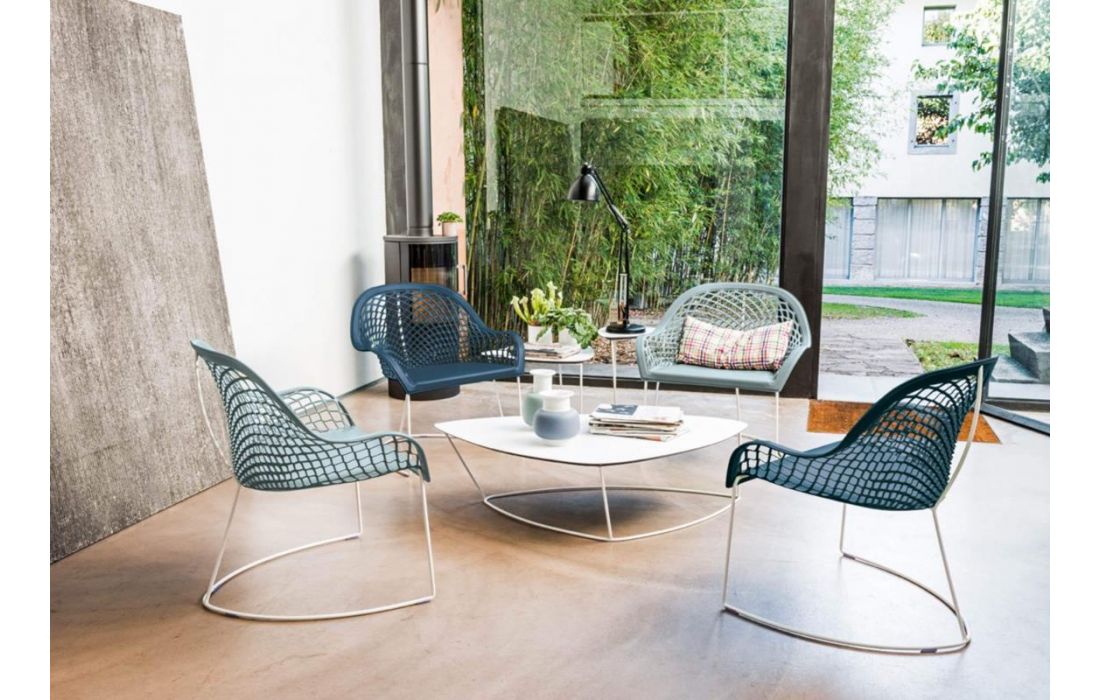 Armchair with a sled base, metal structure with leather seat and backrest.Recipient :