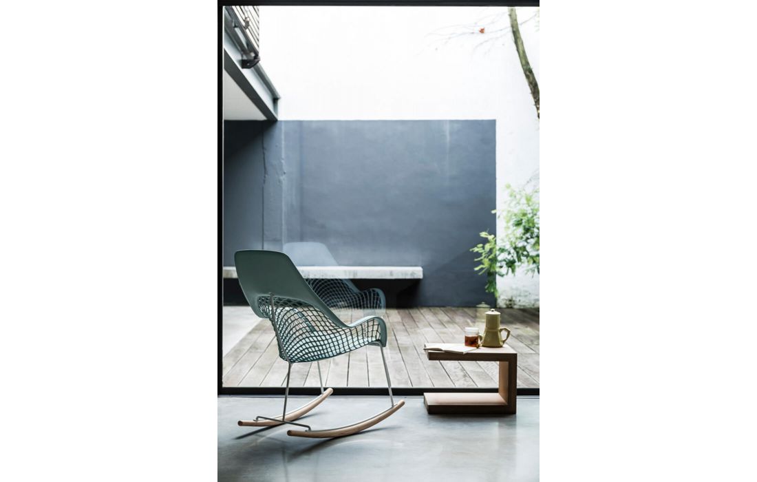 Rocking armchair with metal structure with leather seat and backrest.Recipient :