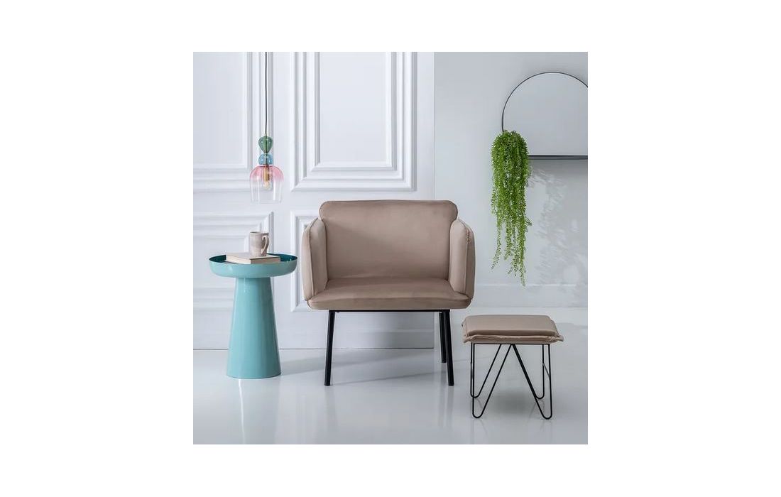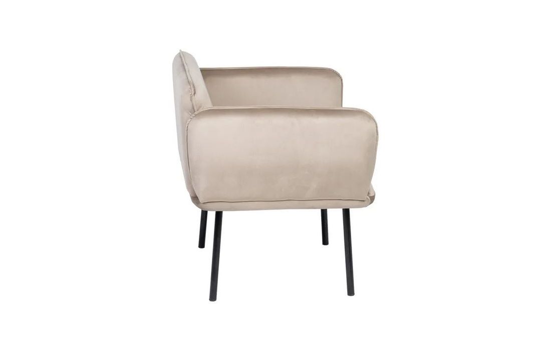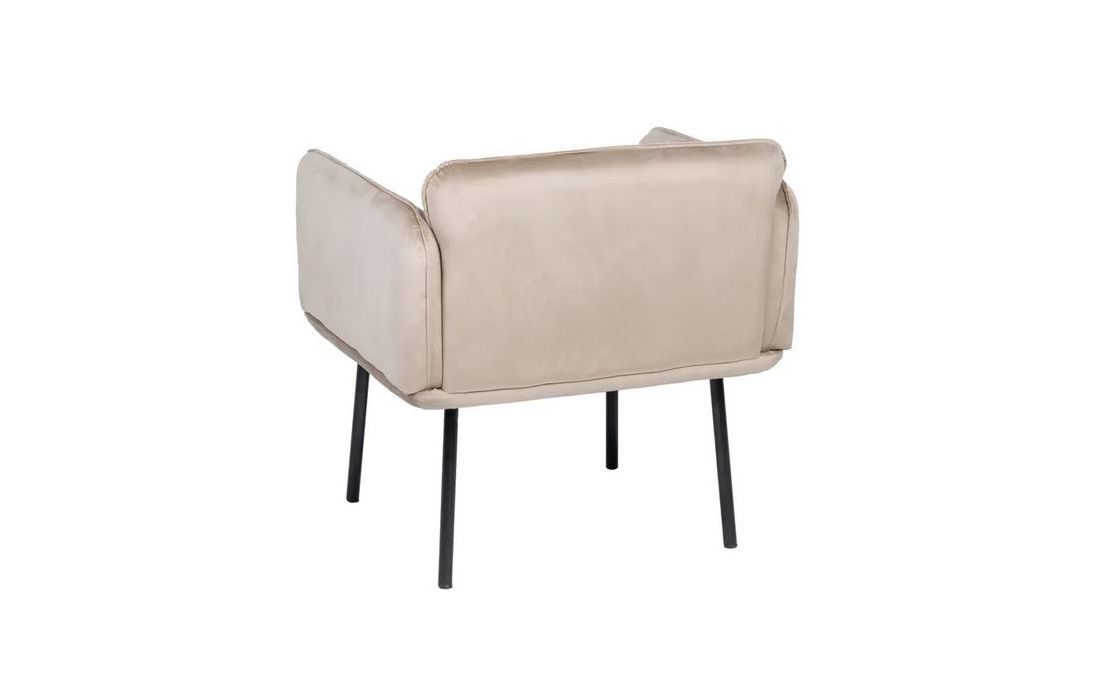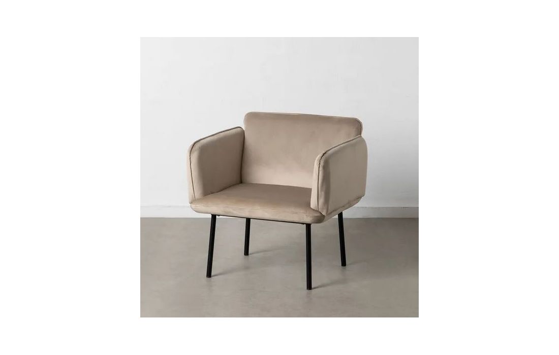 Armchair with feet in black metal, upholstered in 100% polyester beige fabric