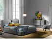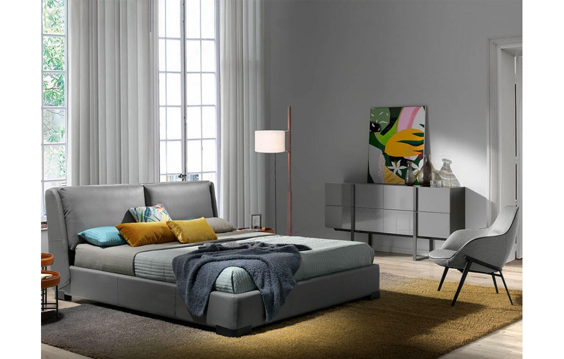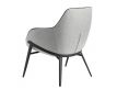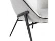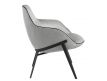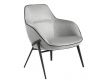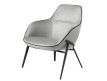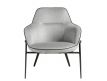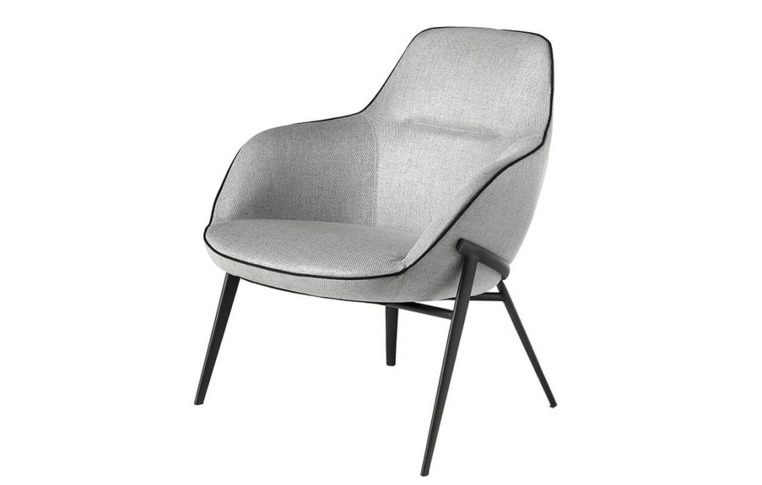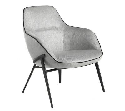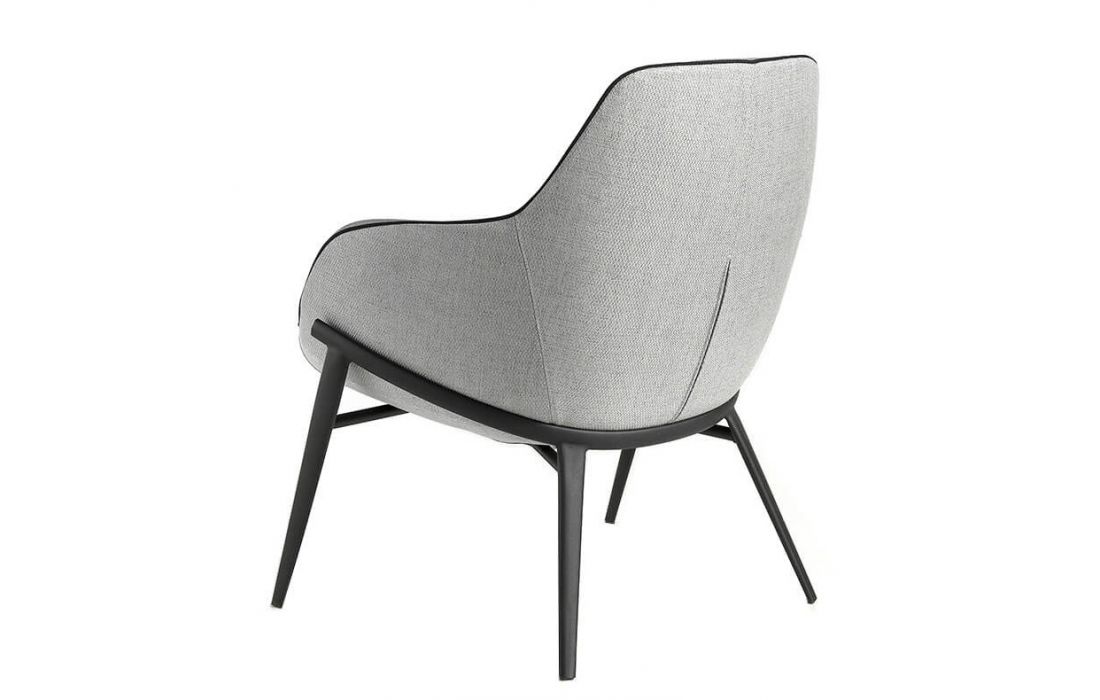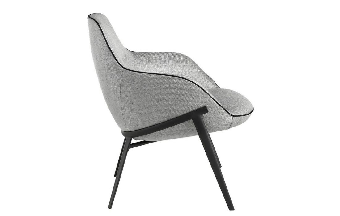 Armchair upholstered in gray fabric with black detail and black steel structure