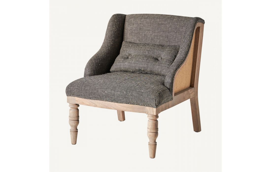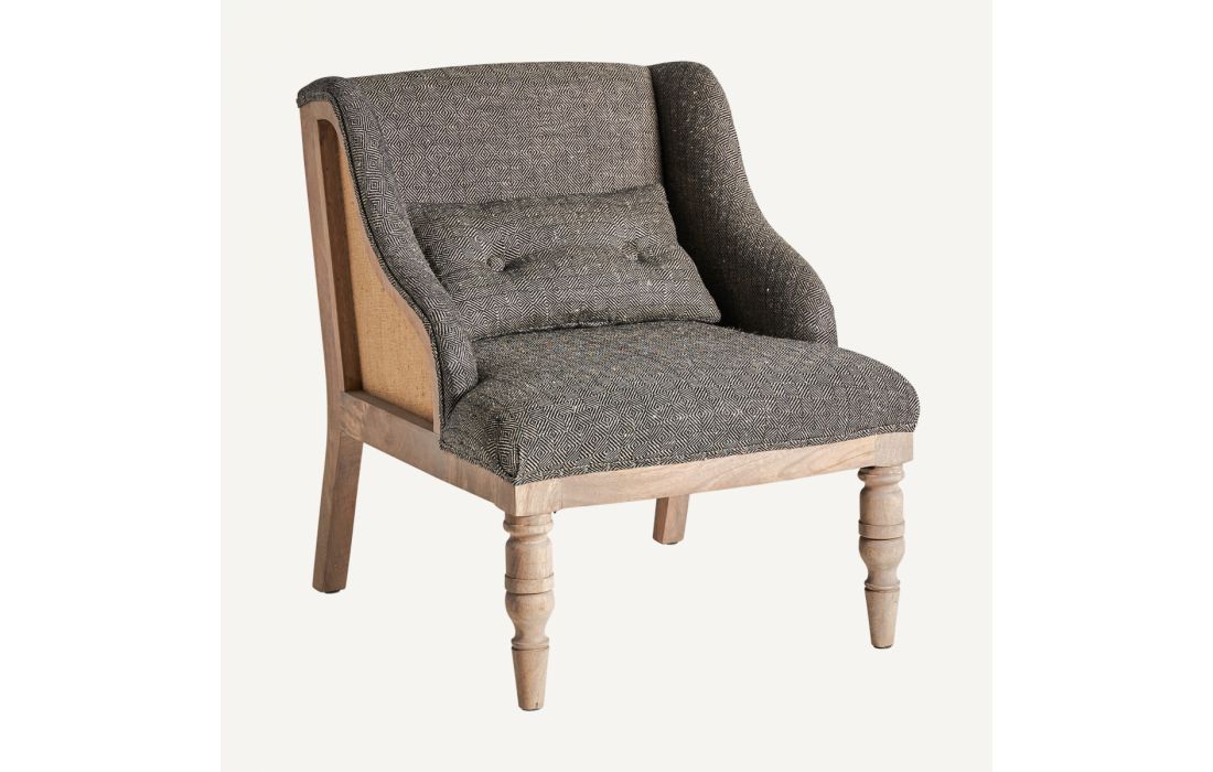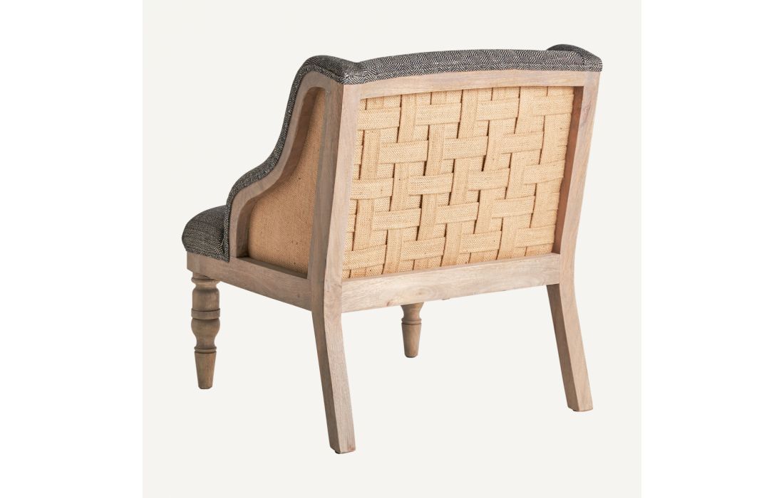 ARMCHAIR RUOMS, GREY/NATURAL COLOUR, STYLE COLONIAL. MADE OF MANGO WOOD, COMBINED WITH POLYESTER.