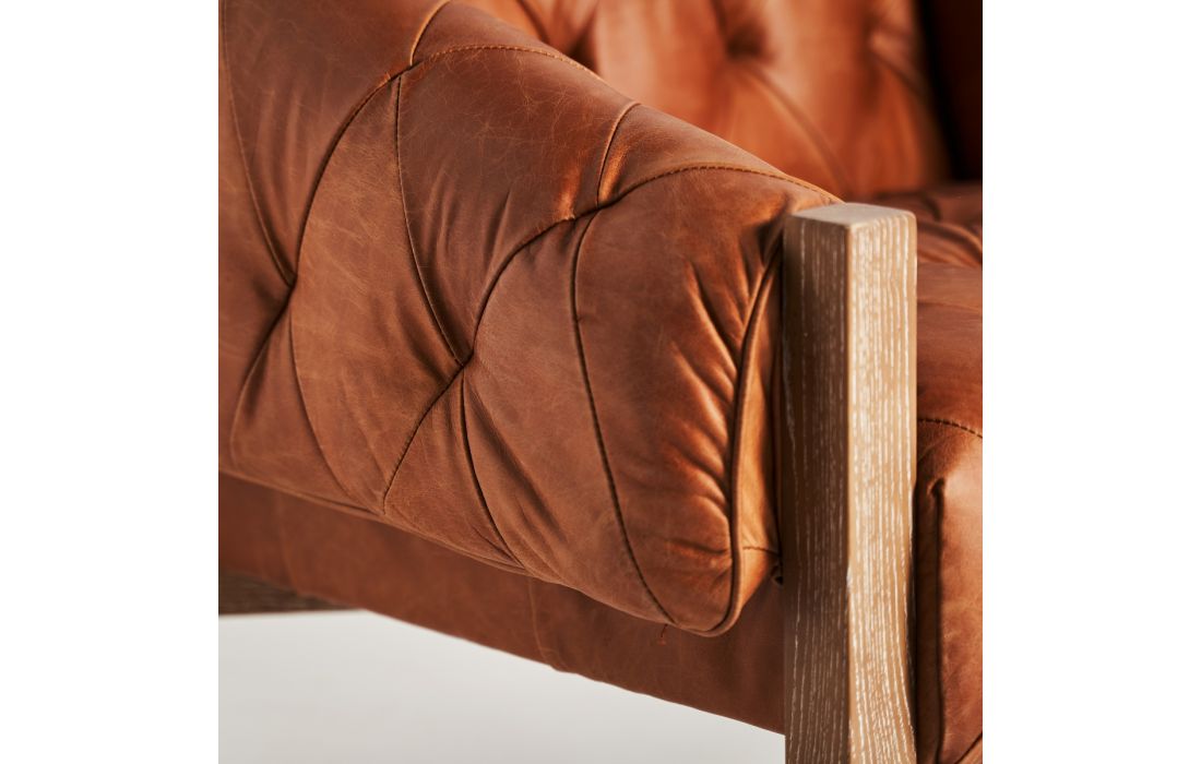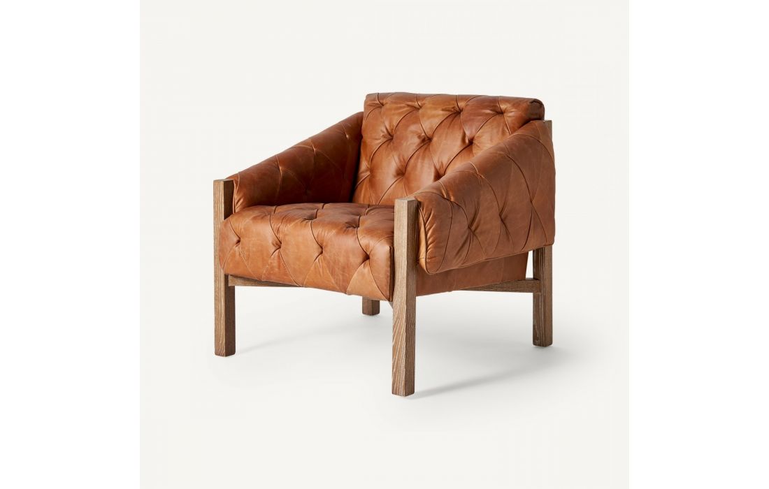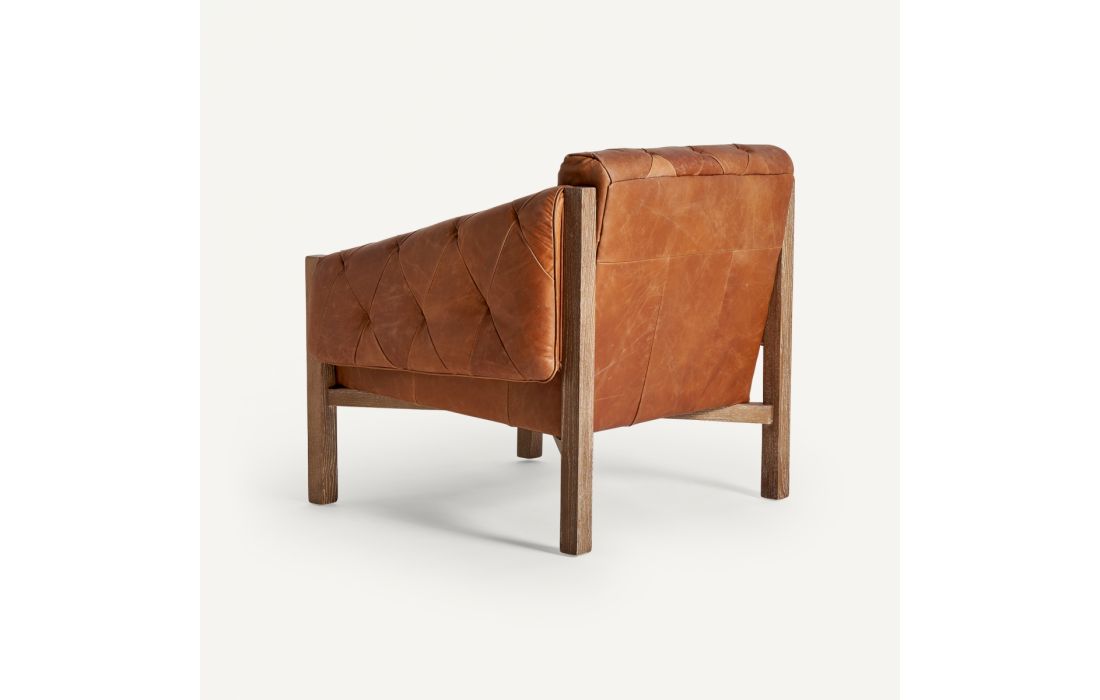 ARMCHAIR GLINSK, BROWN COLOUR, STYLE VINTAGE. MADE OF BIRCH WOOD, COMBINED WITH LEATHER AND FOAM.