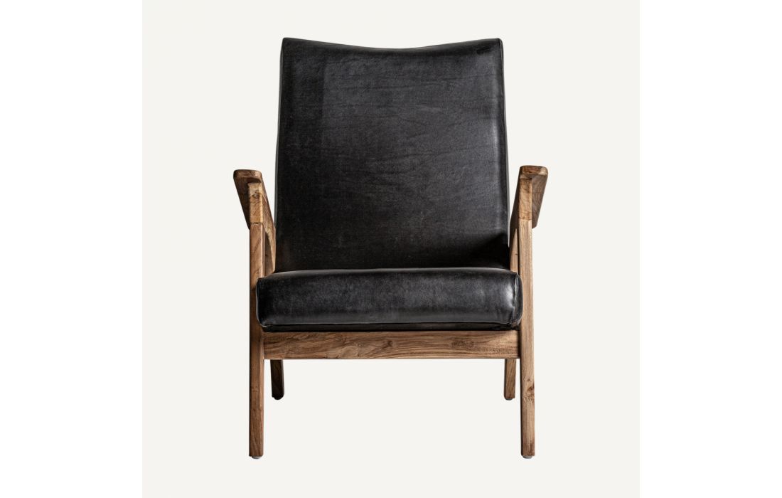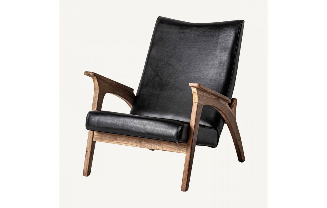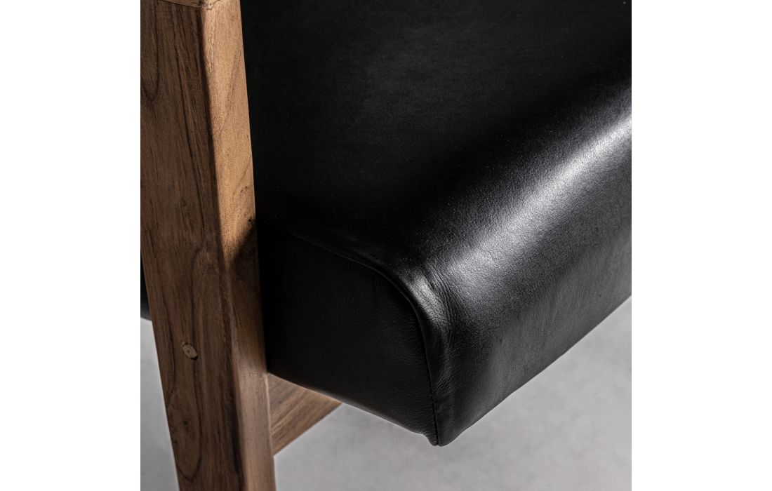 ARMCHAIR CRANS, BLACK/NATURAL COLOUR, STYLE VINTAGE. MADE OF TEAK WOOD, COMBINED WITH LEATHER