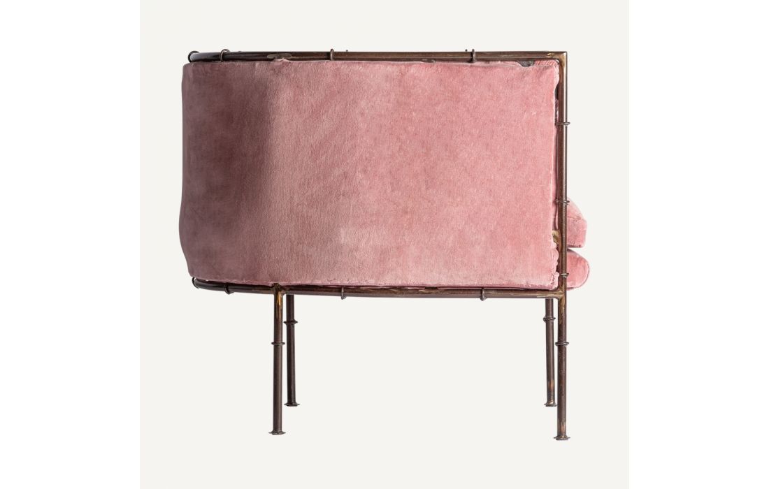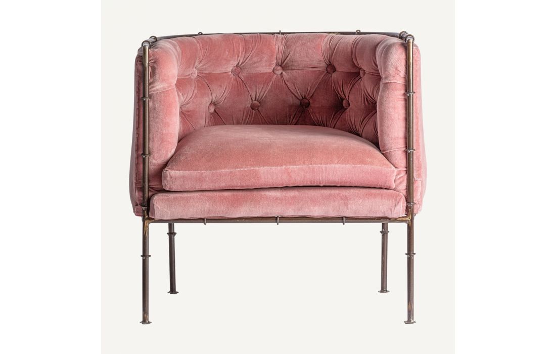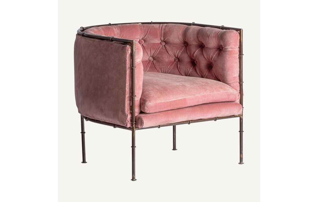 ARMCHAIR BUTTONED TARDIANO, PINK COLOUR, STYLE SHABBY CHIC. MADE OF IRON, COMBINED WITH VELVET AND COTTON.