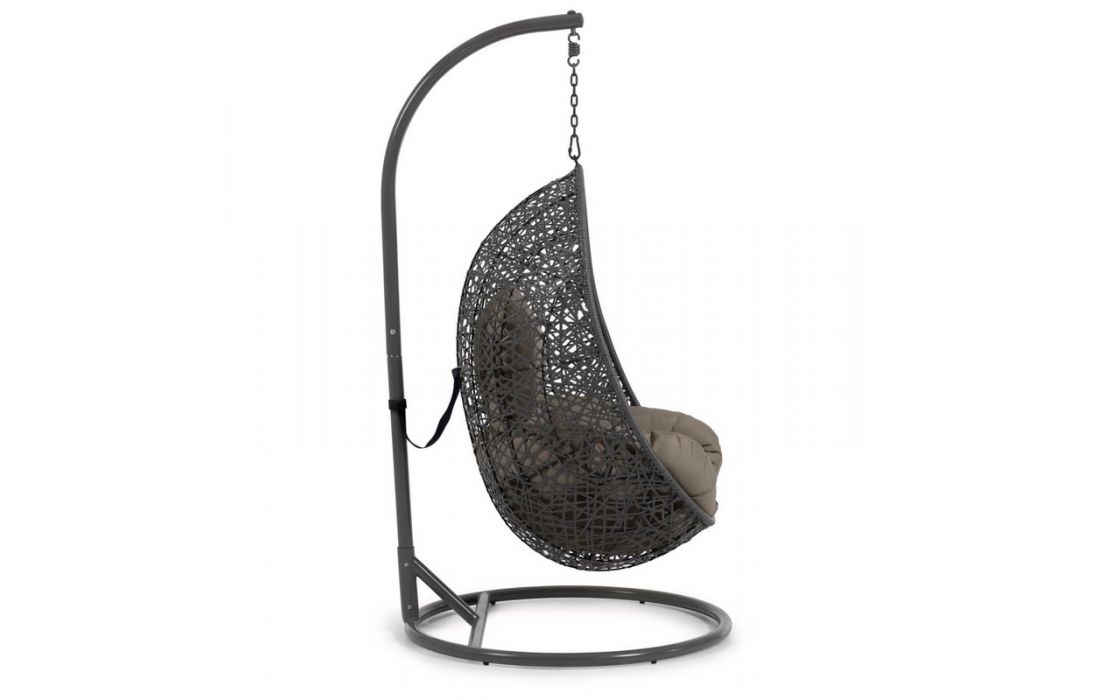 Suspended armchair in synthetic rattan, polyester and cotton finish