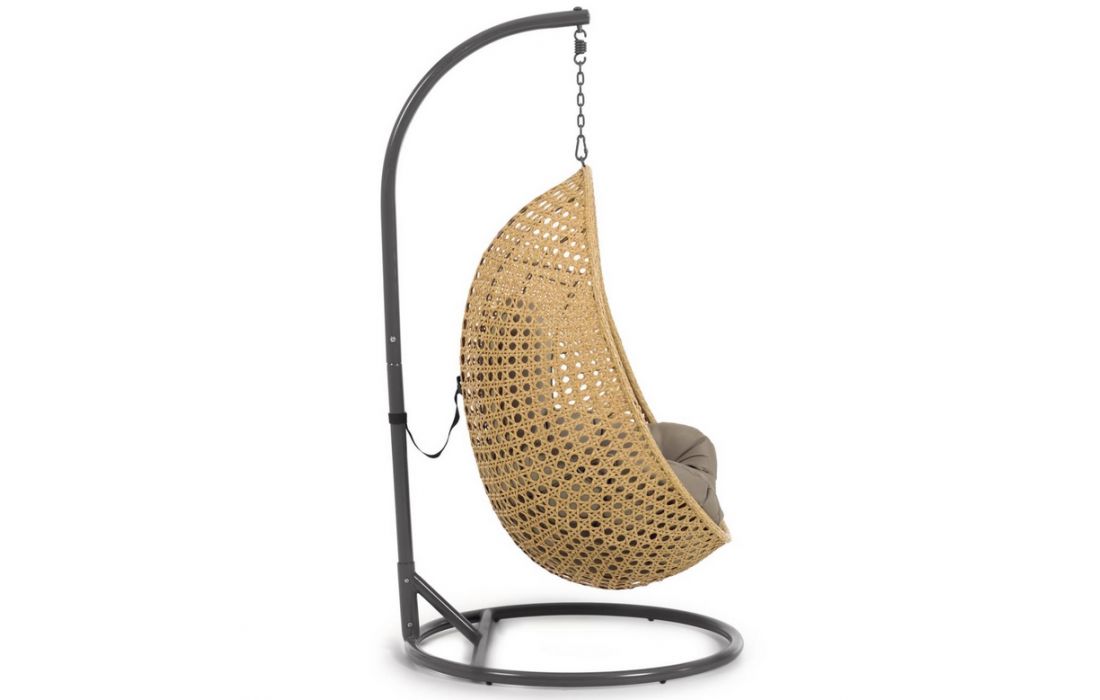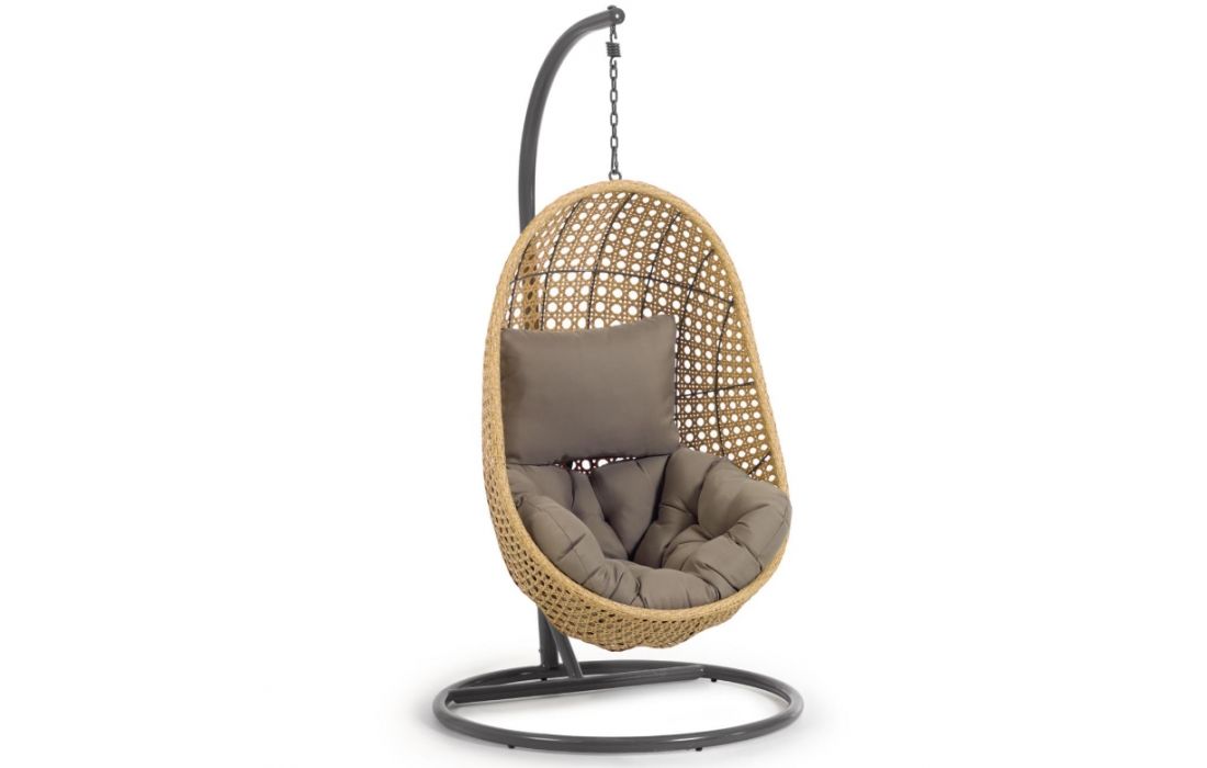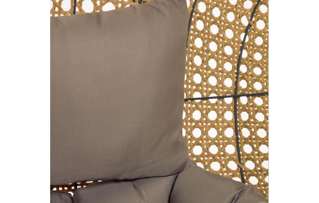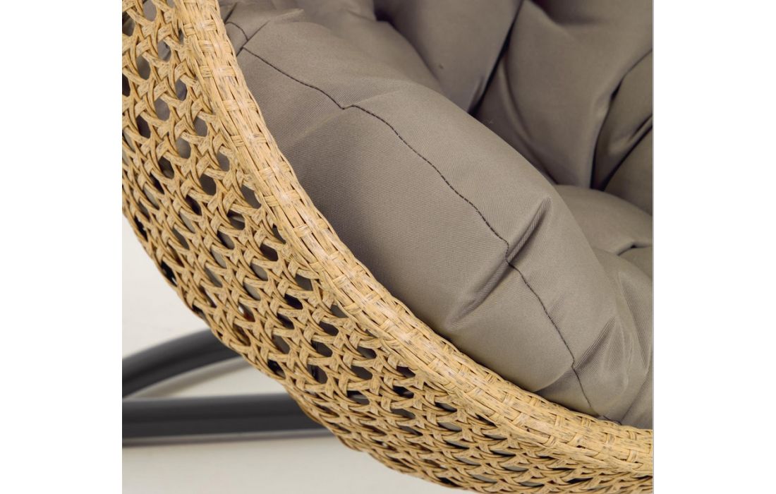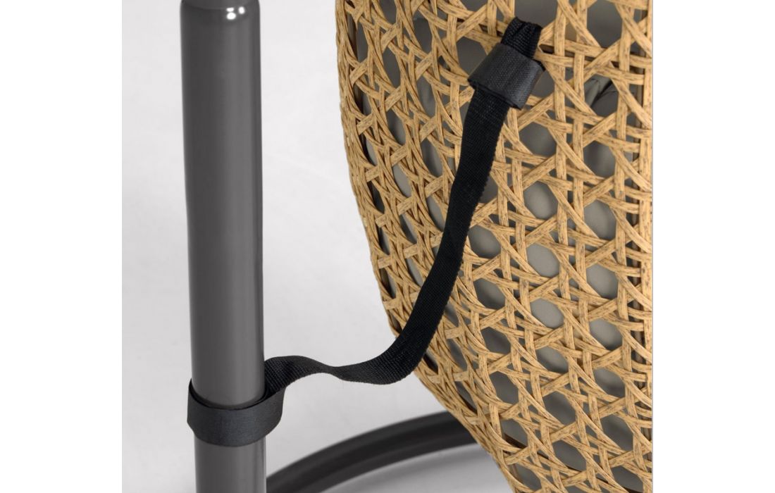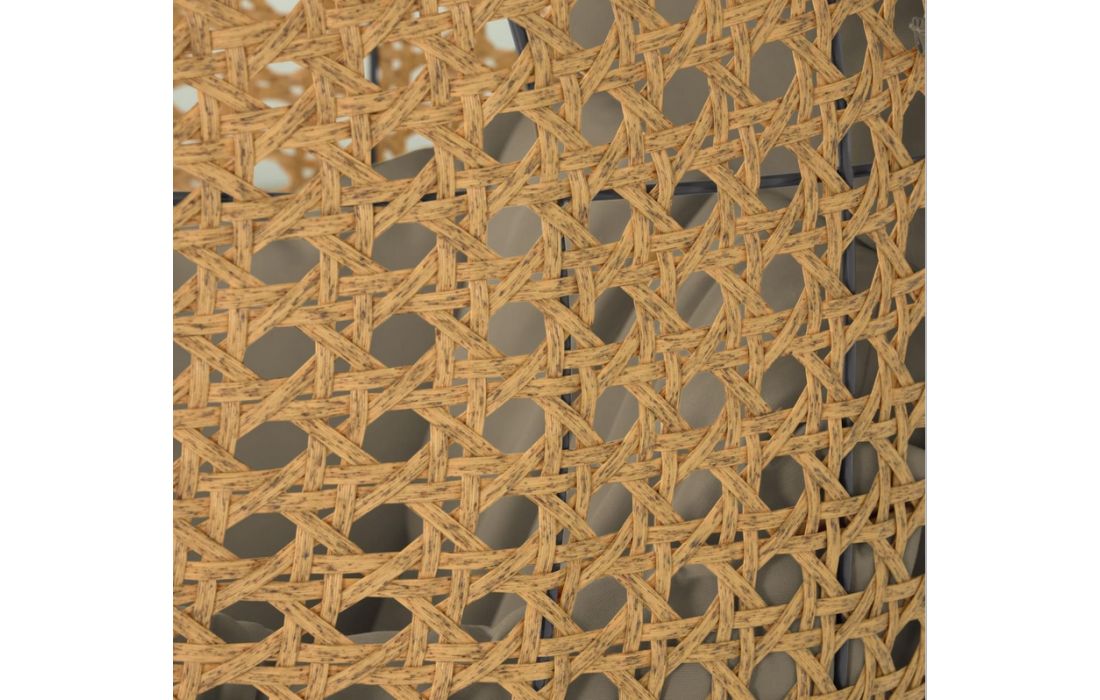 Suspended armchair in synthetic rattan, polyester and cotton finish