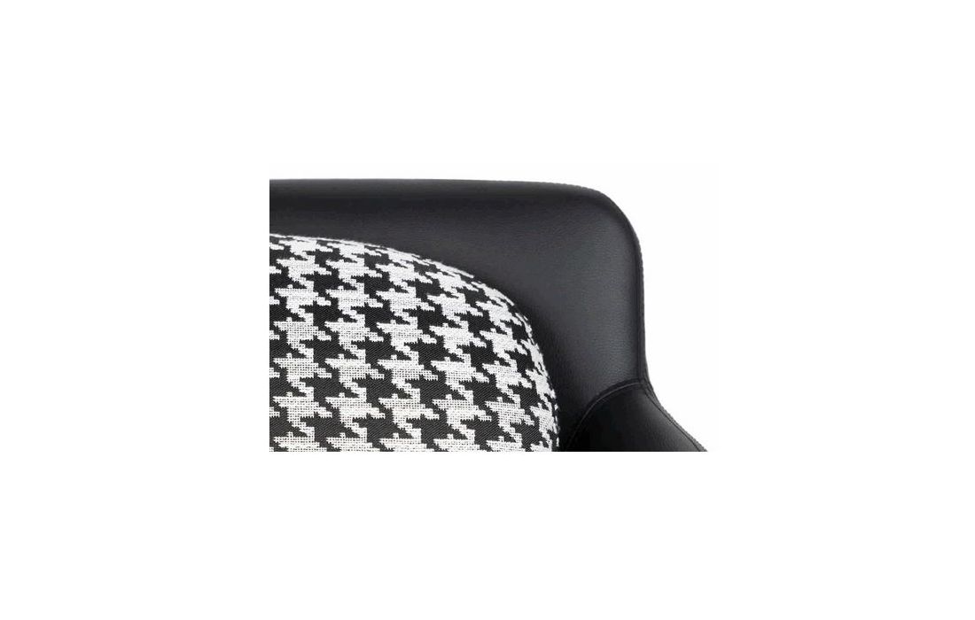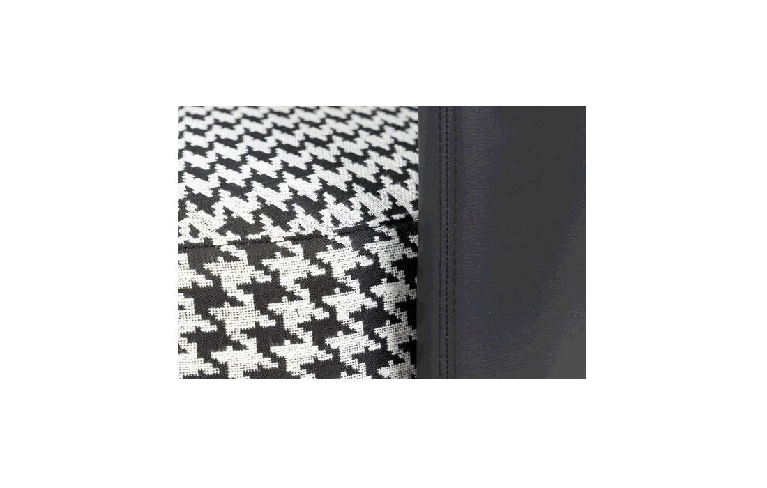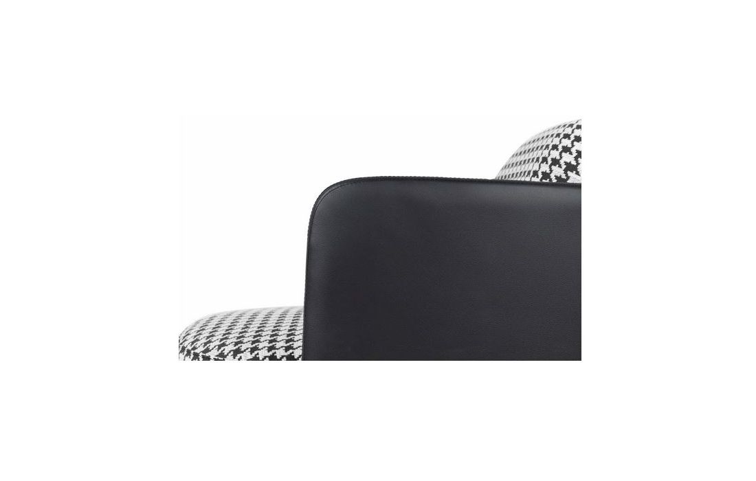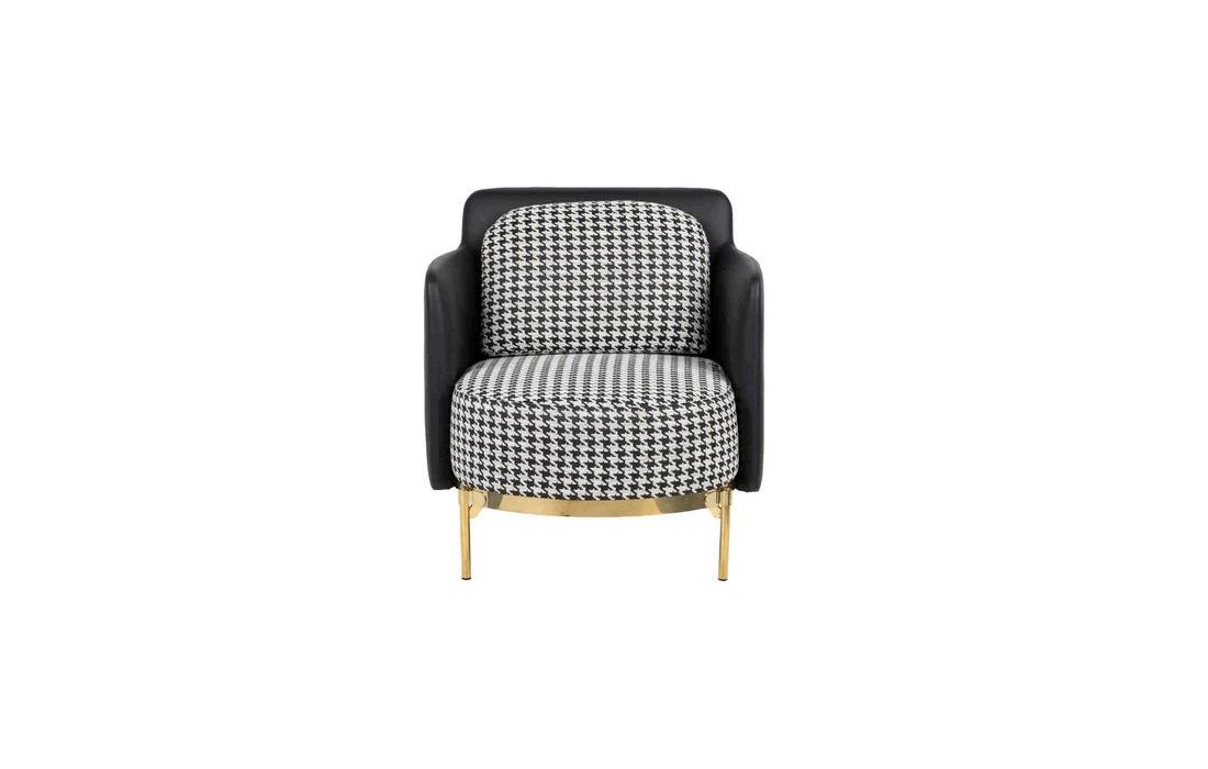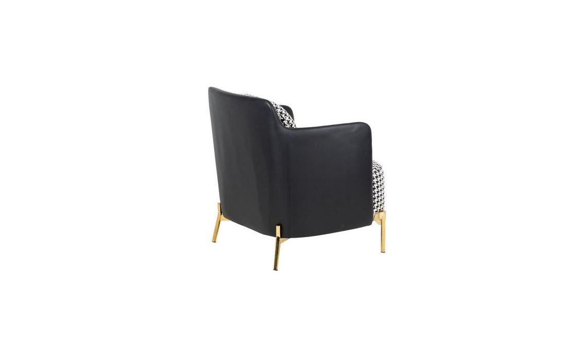 Armchair in black synthetic leather, with fabric seat and cushion with gold-painted stainless steel feet
