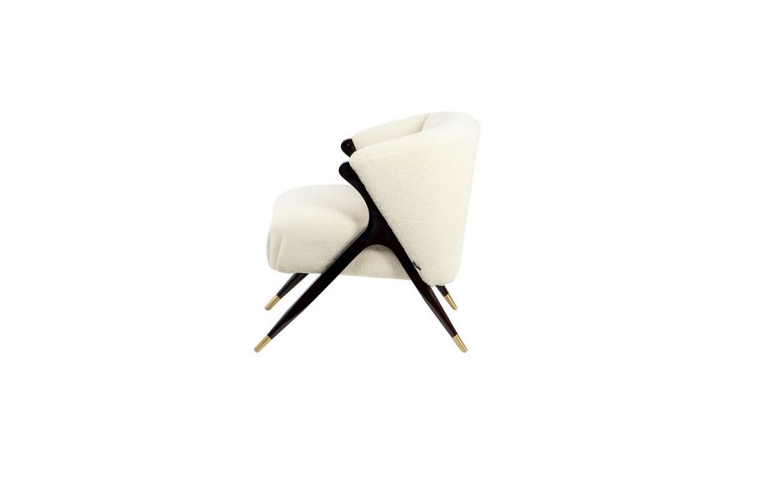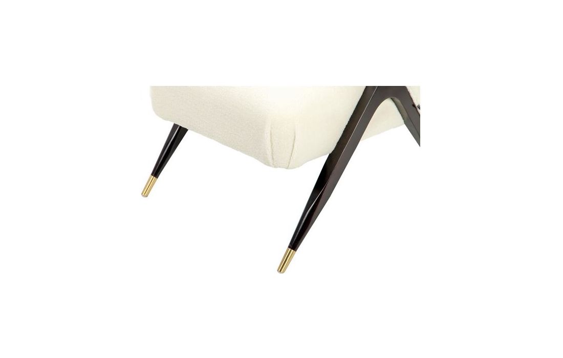 Armchair in black painted mdf with white polyester back and seat with golden details