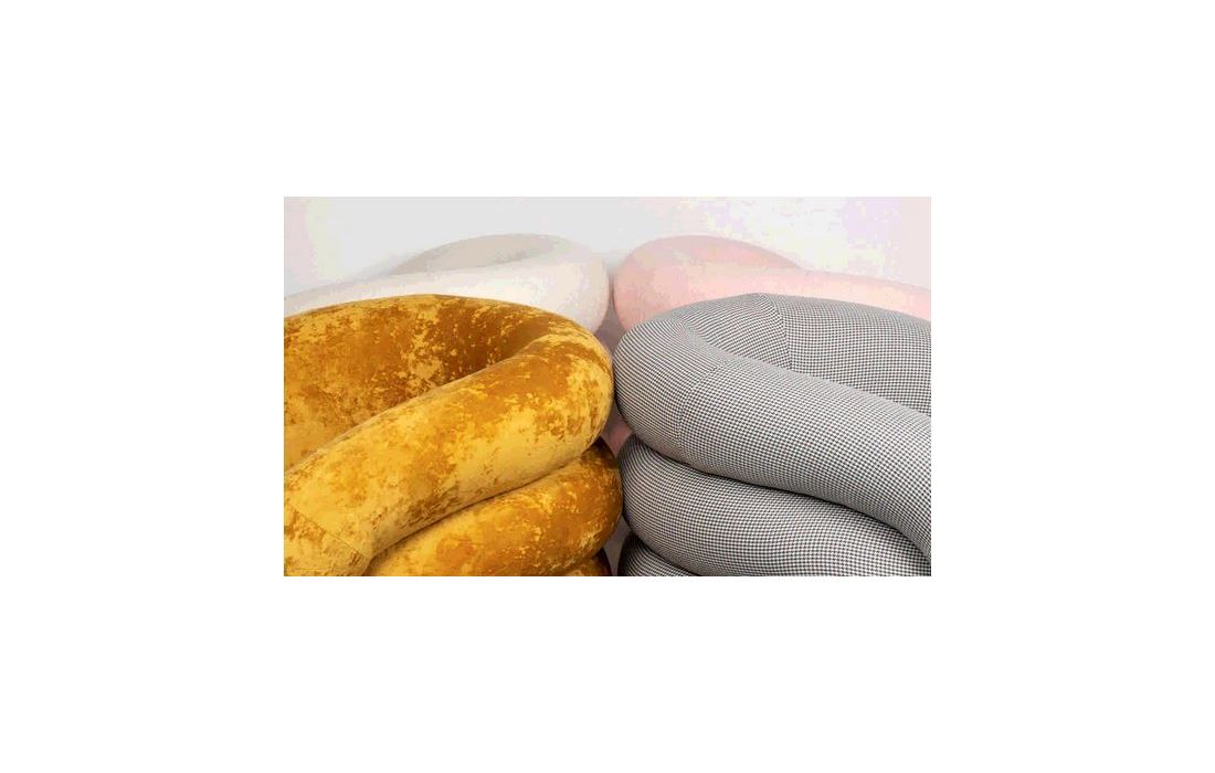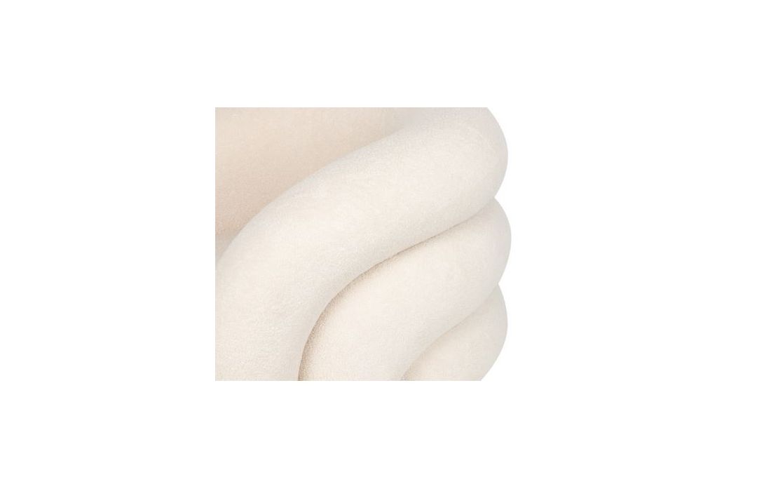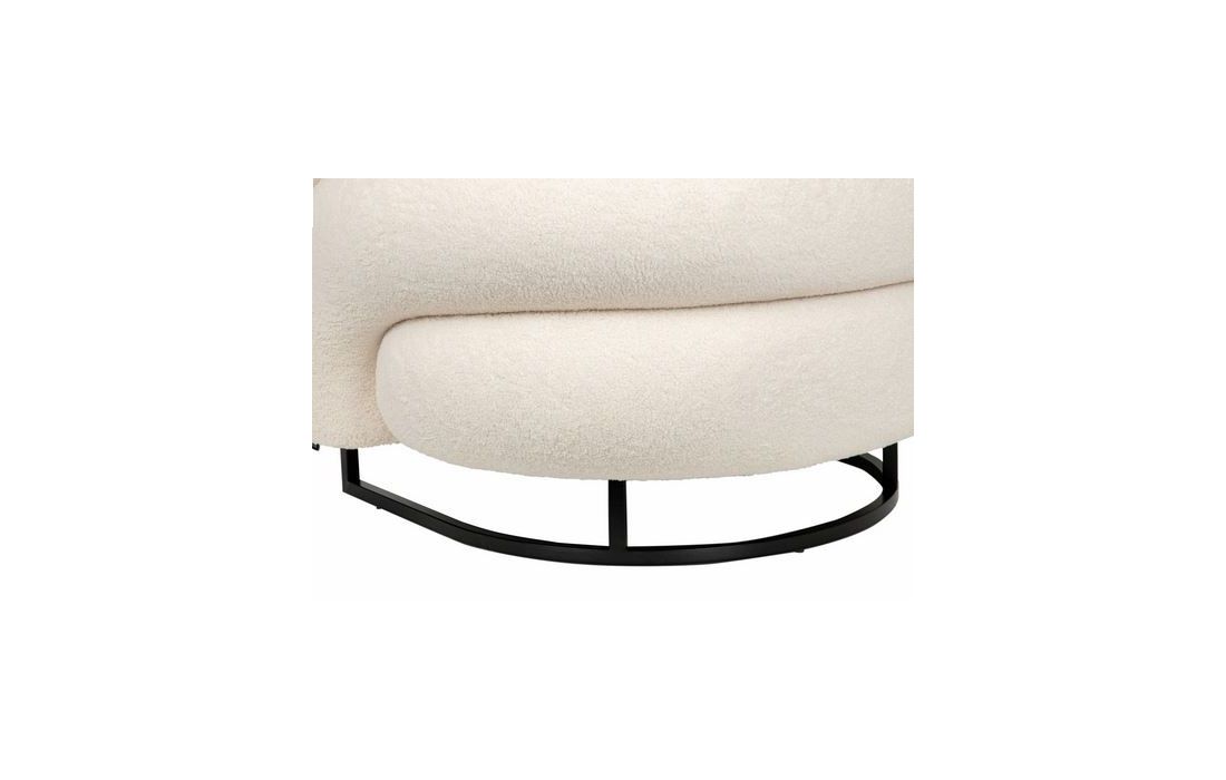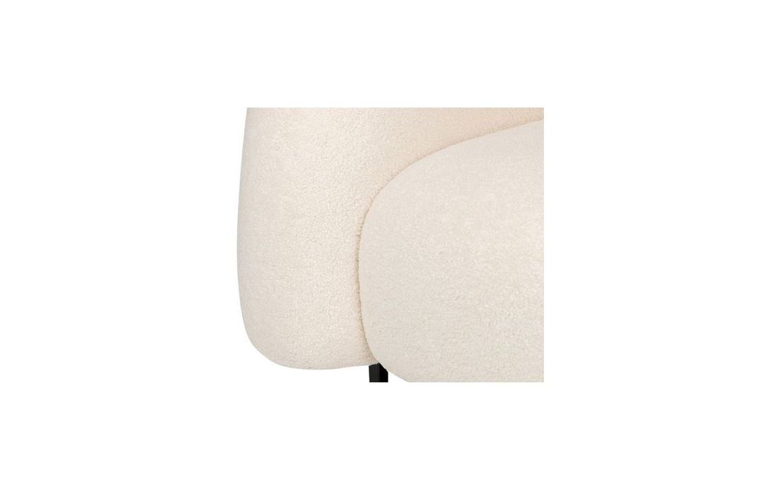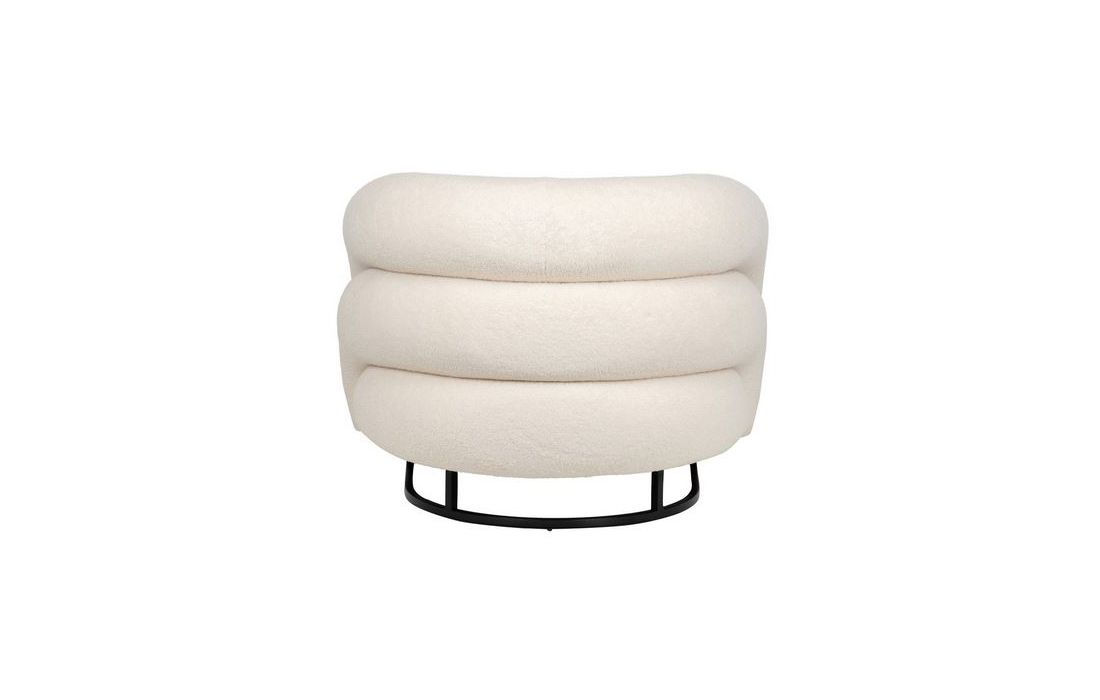 Armchair in white boucle fabric with stainless steel feet painted in black